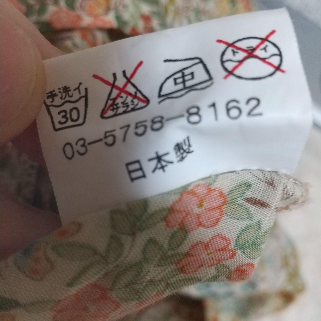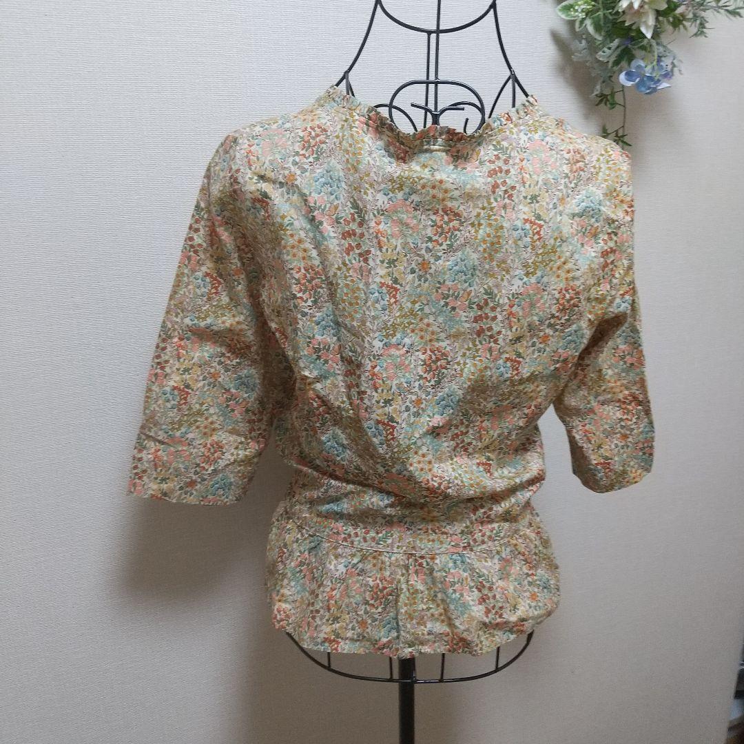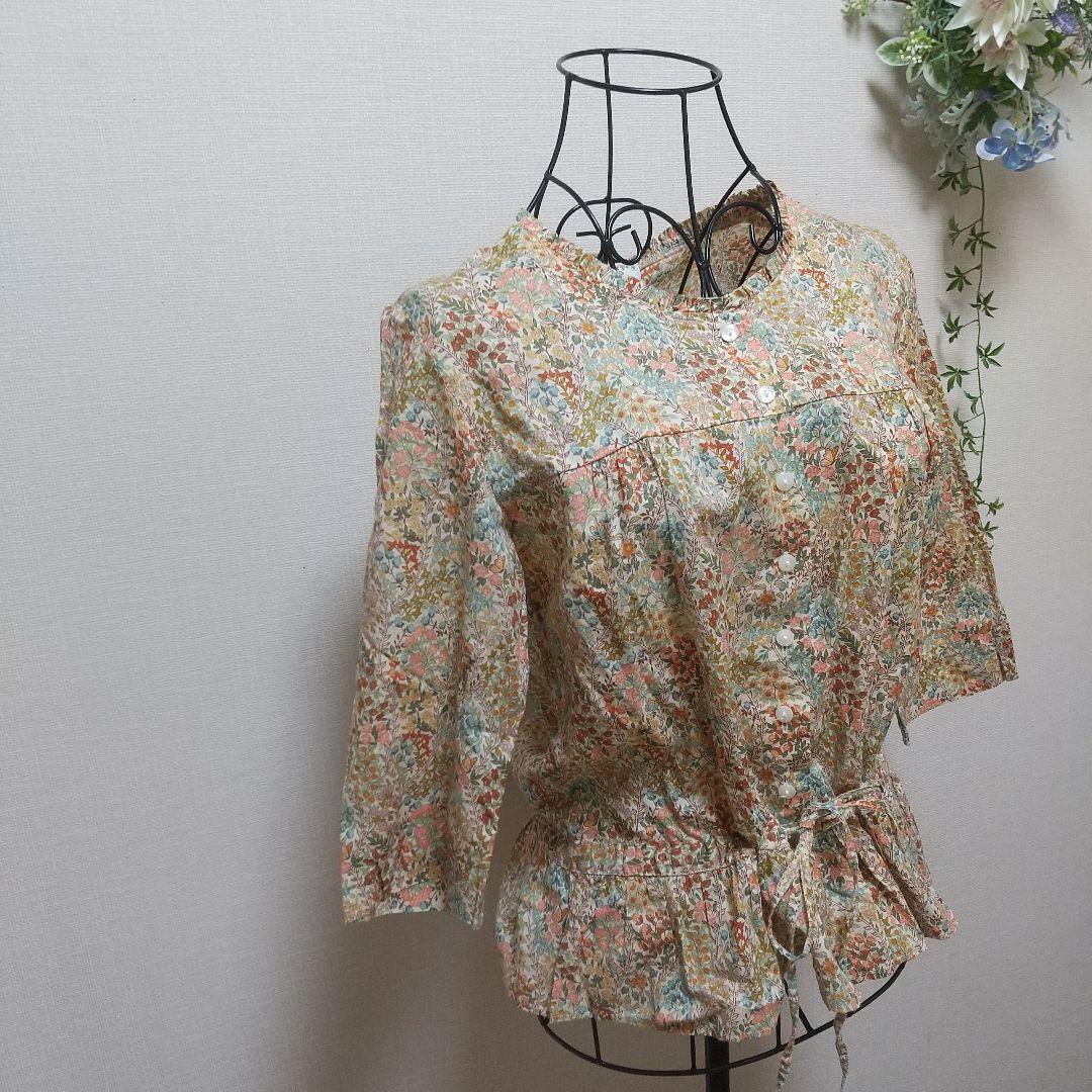 花柄デザインの七分袖ブラウス(USED)、ウエストリボンで調整可能です。