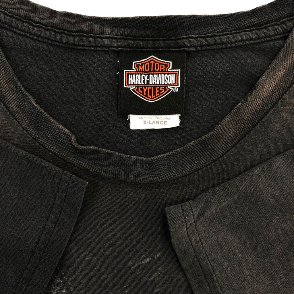[商品管理番号] T7693 [ブランド] HARLEY DAVIDSON/ハーレーダビッドソン [サイズ] XL [実寸サイズ] 肩幅:約50cm 着丈:約71cm 身幅:約61cm 袖丈:約20cm [主な素材] 表地 : コットン [色] ブラック [仕様] [状態] 汚れ:首元、裾 破れ:腹部、裾 特記事項:変色、色褪せ、プリント劣化 | |||