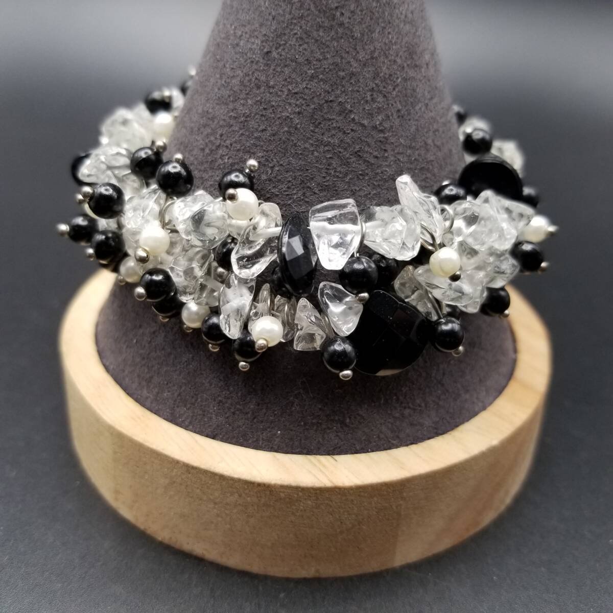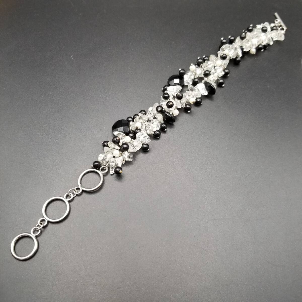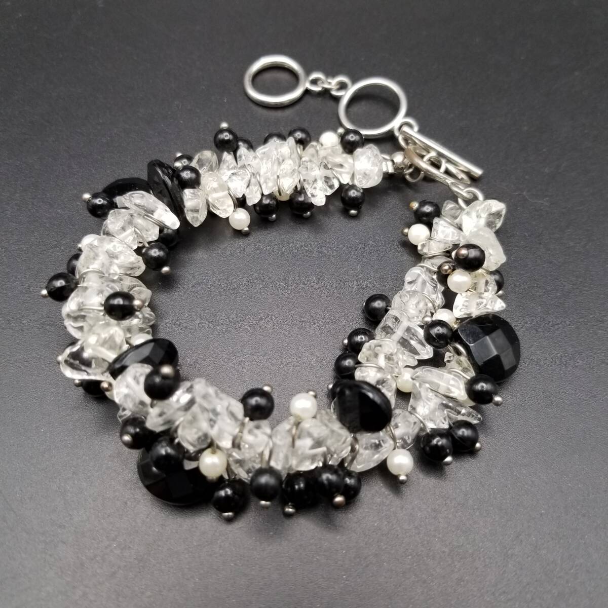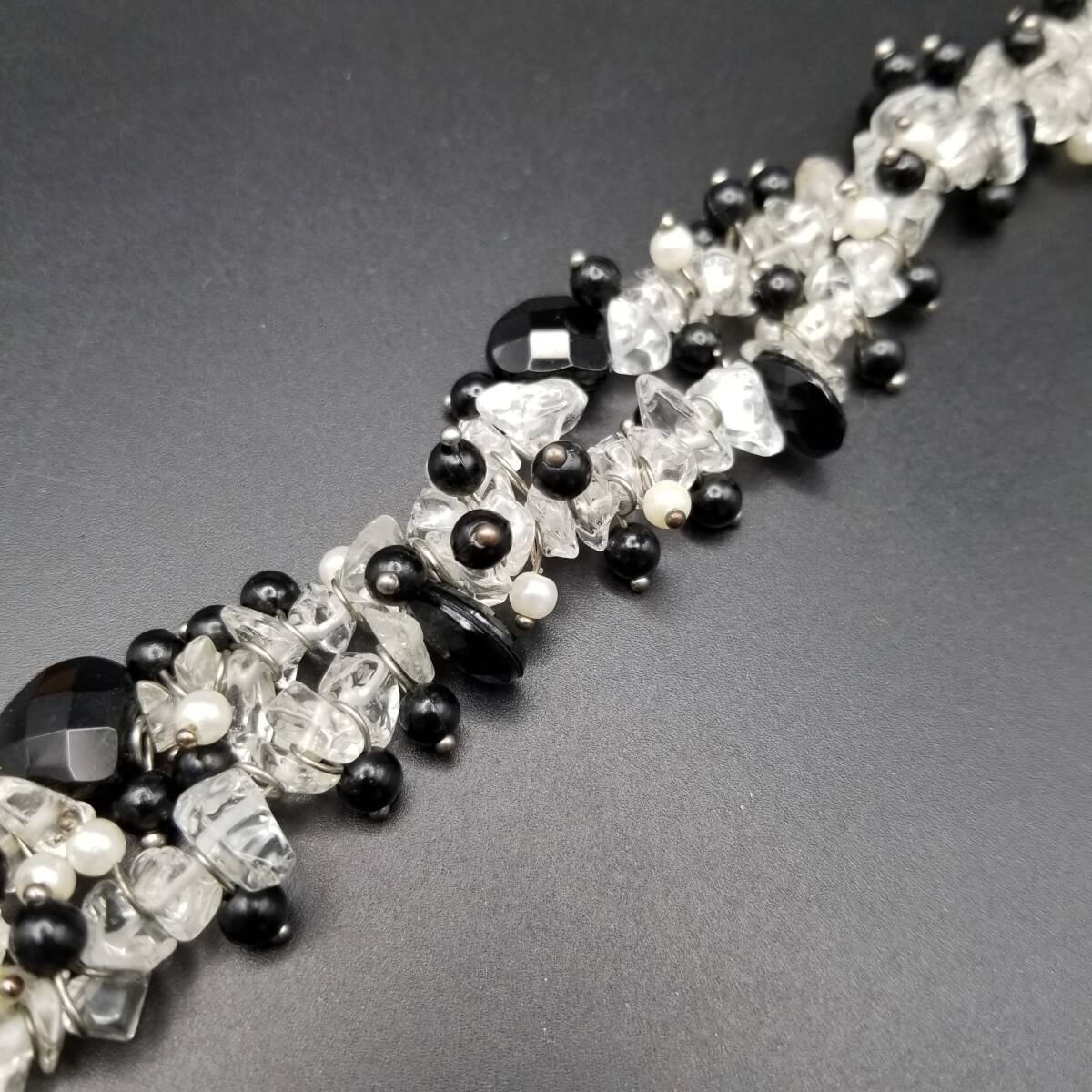 クリア/ブラックストーン バイカラー ヴィンテージ ブレスレット 2トーン クリア感 夏 レトロ 大ぶり ファッションジュエリー R16-B