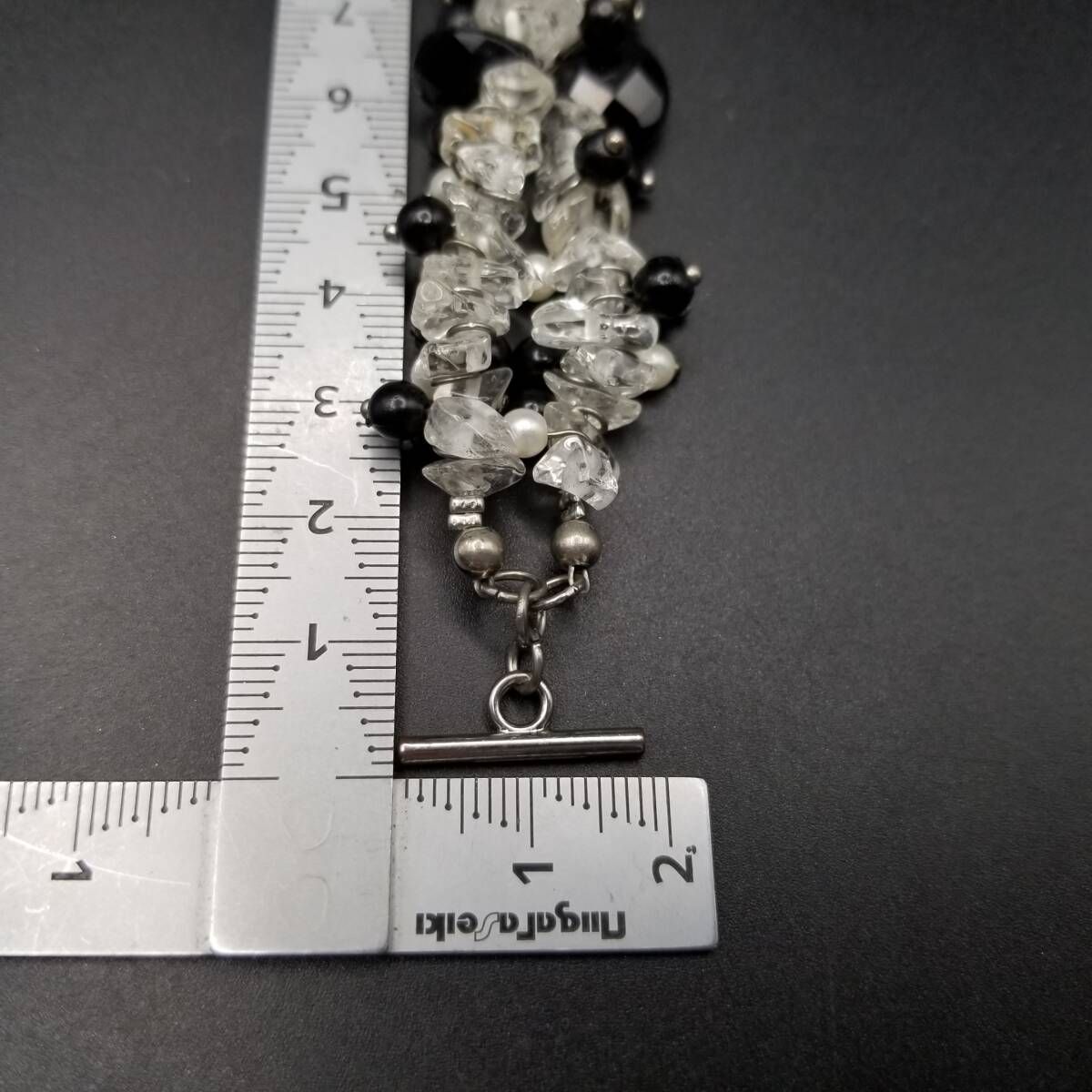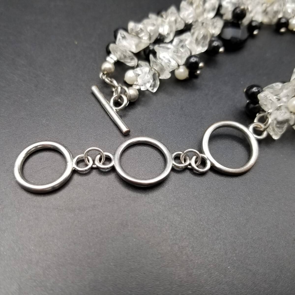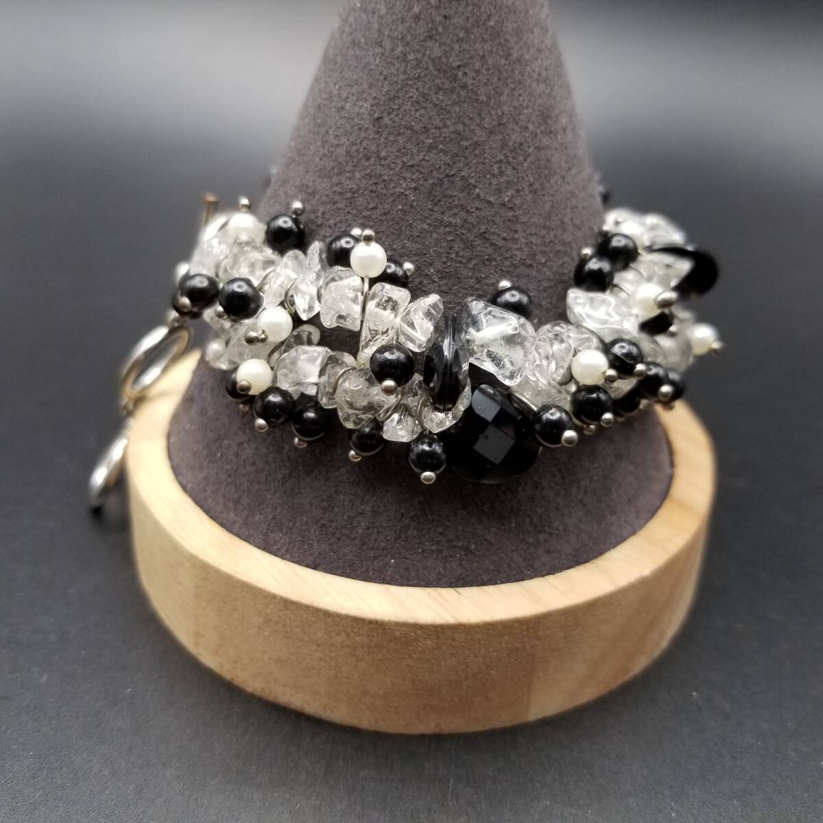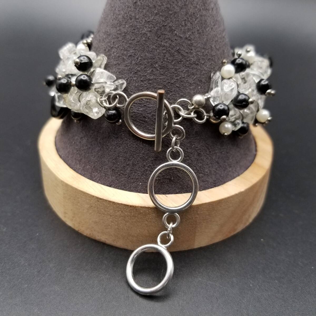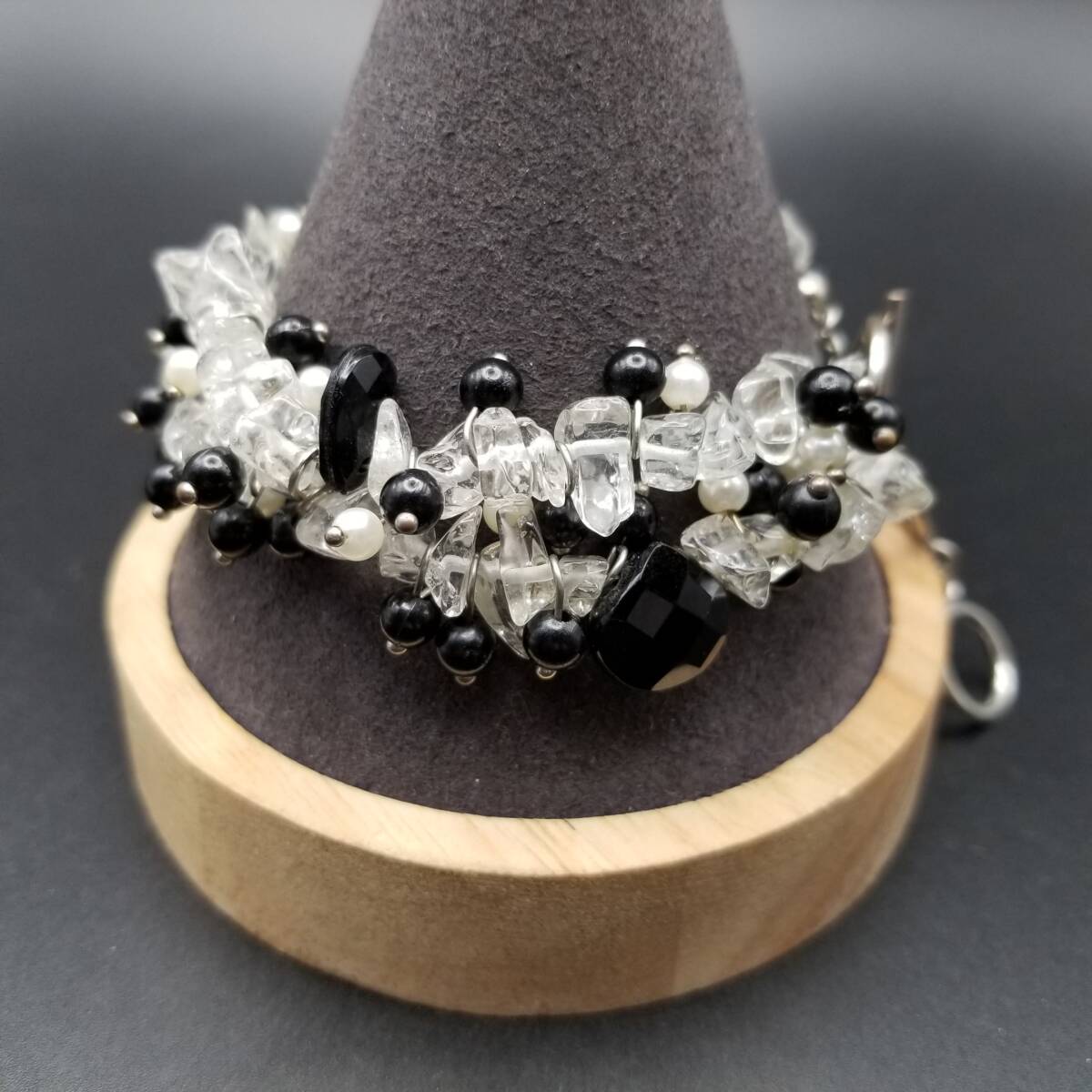 クリア/ブラックストーン バイカラー ヴィンテージ ブレスレット 2トーン クリア感 夏 レトロ 大ぶり ファッションジュエリー R16-B