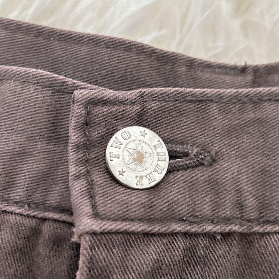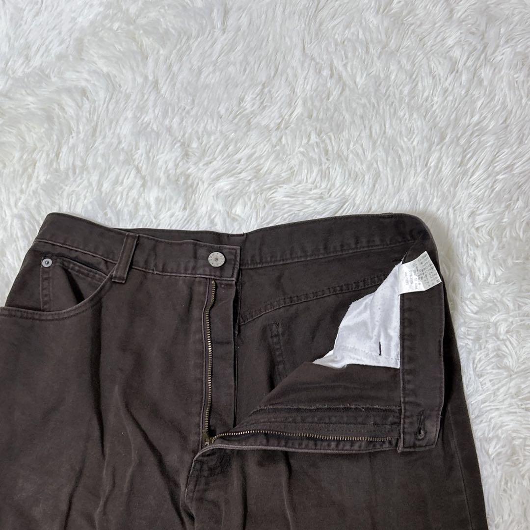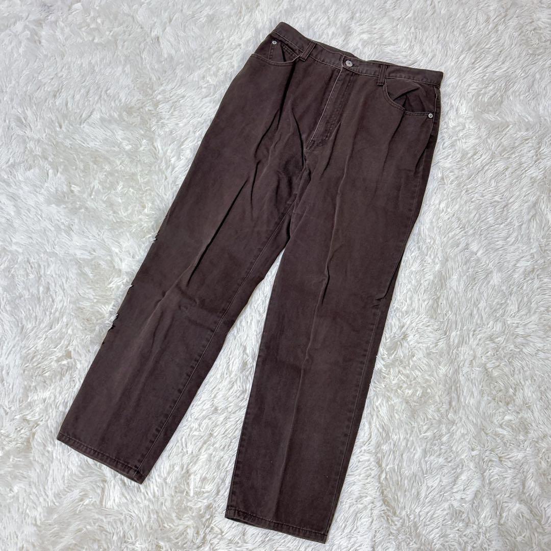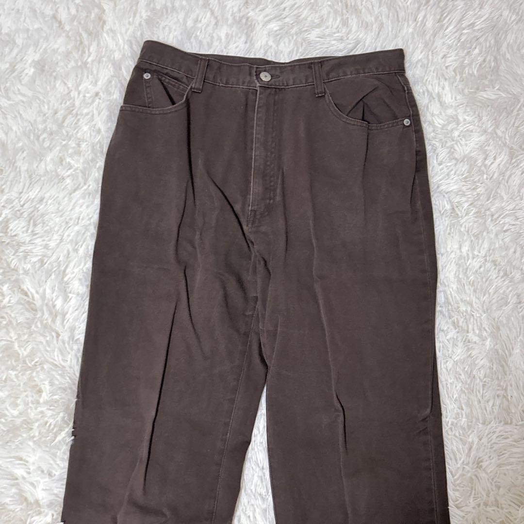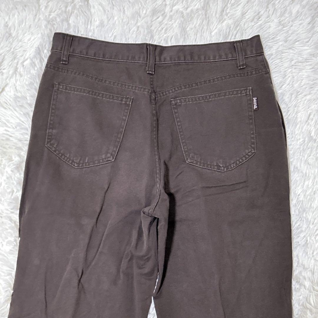 ブラウンのストレートレッグチノパン、快適な着心地。