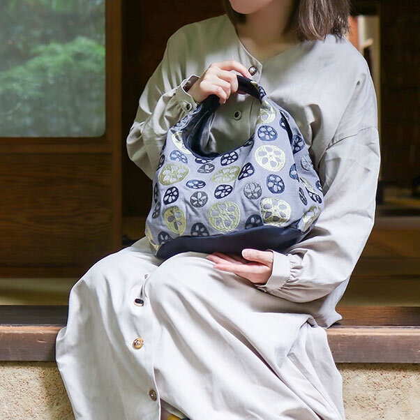 色の違うれんこん刺繍柄が可愛らしく目を惹きます。