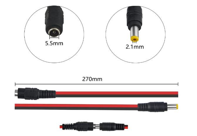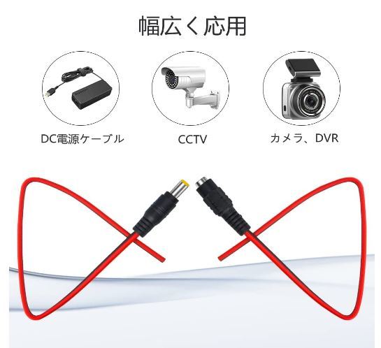 DC電源オスとメスのコネクタ ケーブル付き 2.1mmx 5.5 mm CTV DVRカメラなど AWG22