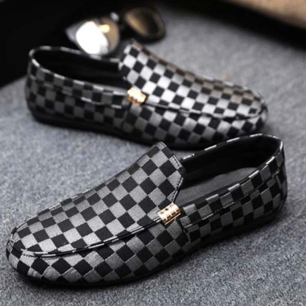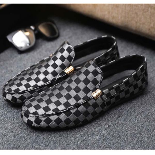 sp37【 27.5cm 】ドライビングシューズ モカシン チェック ブロック柄 メンズ 大きいサイズ 総柄 ローファー スリッポン カジュアル