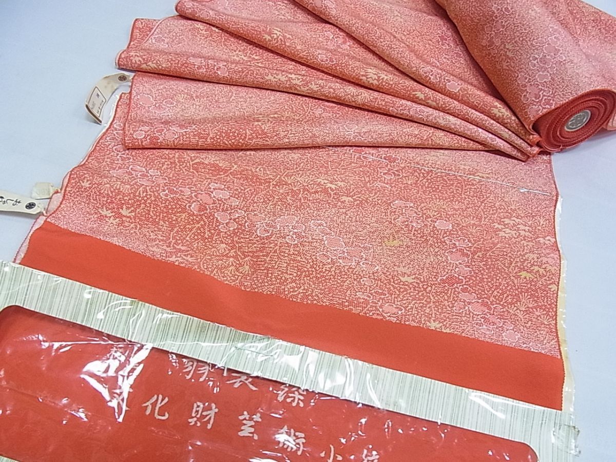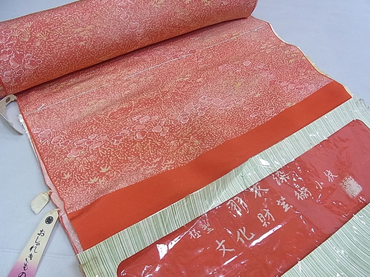 eふれんず◆江戸小紋 反物 着尺 作家物 羽衣染 草花文 三越扱い 未使用品 正絹 美品◆am1973