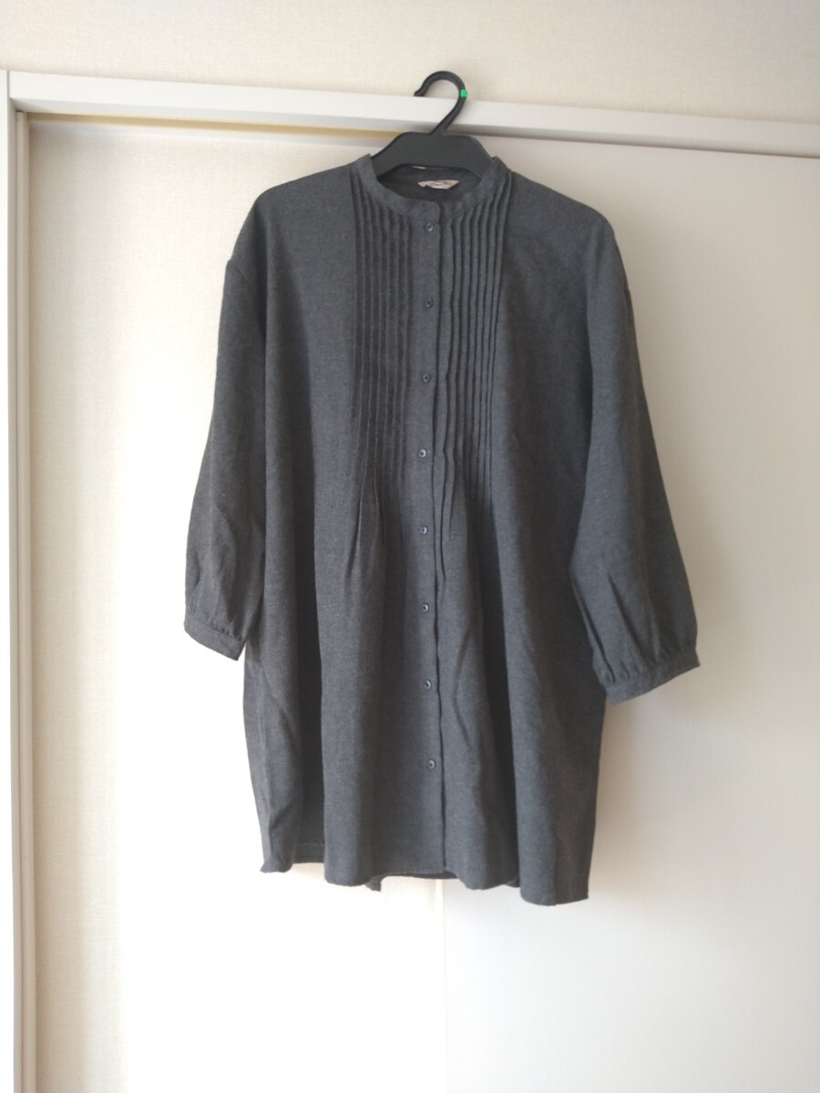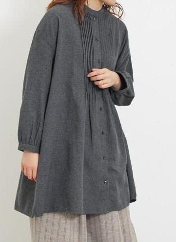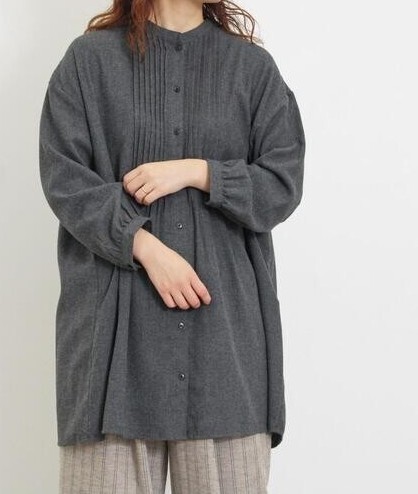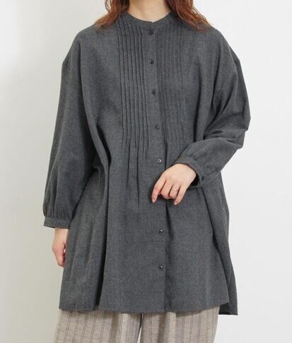バンドカラーとピンタックが上品な印象を与えてくれるチュニック。