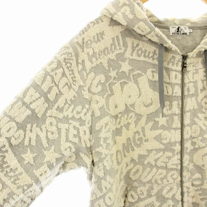 ヒステリックグラマー 18SS POP LOGO ジャガード パーカー ジップアップ 総柄 M グレー アイボリー 02181CF01