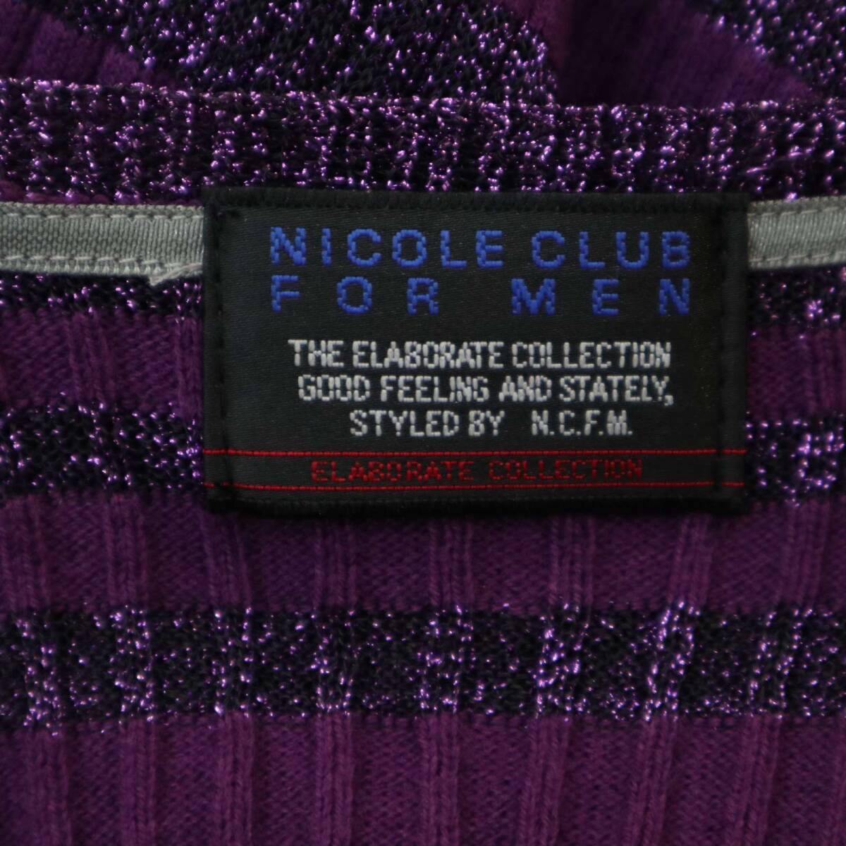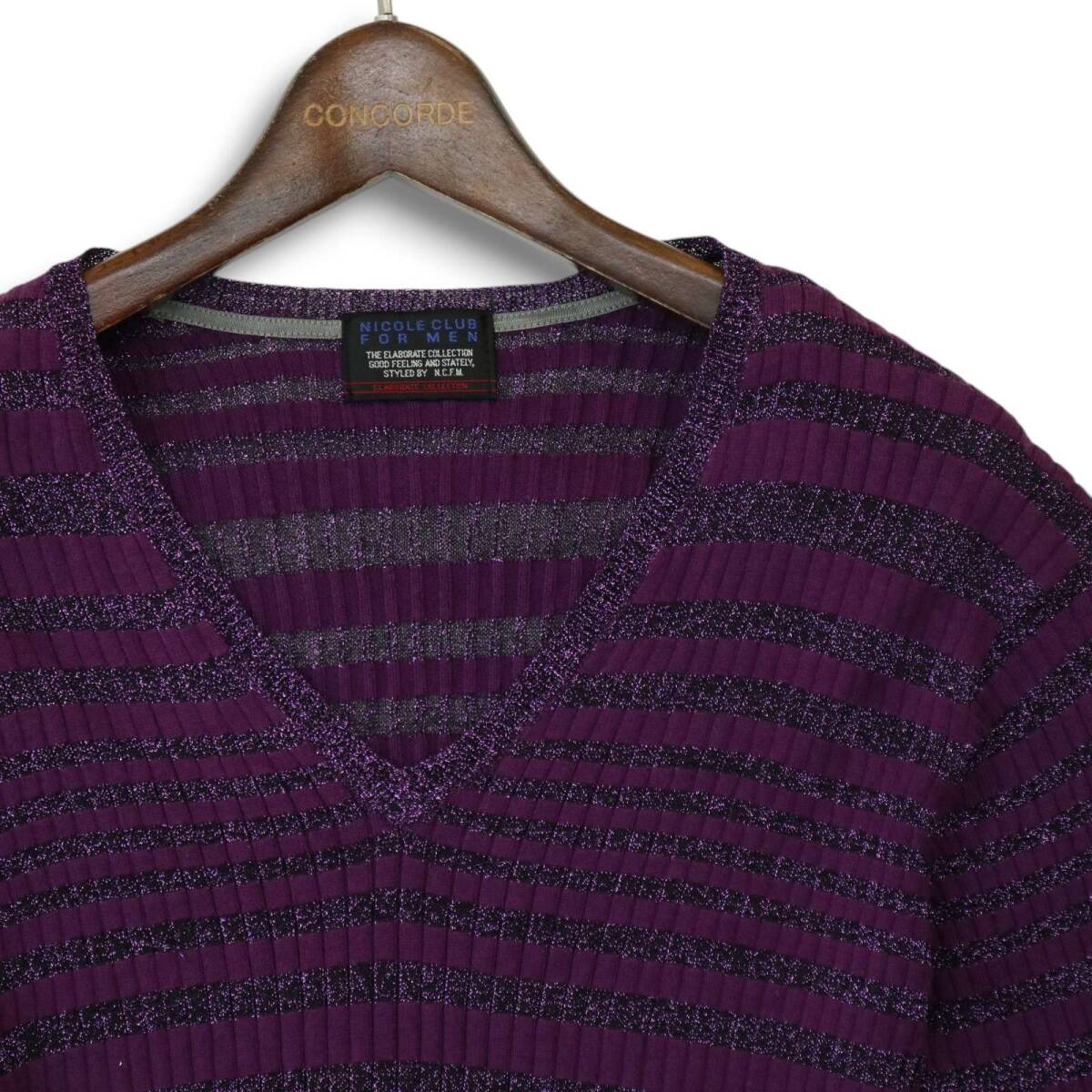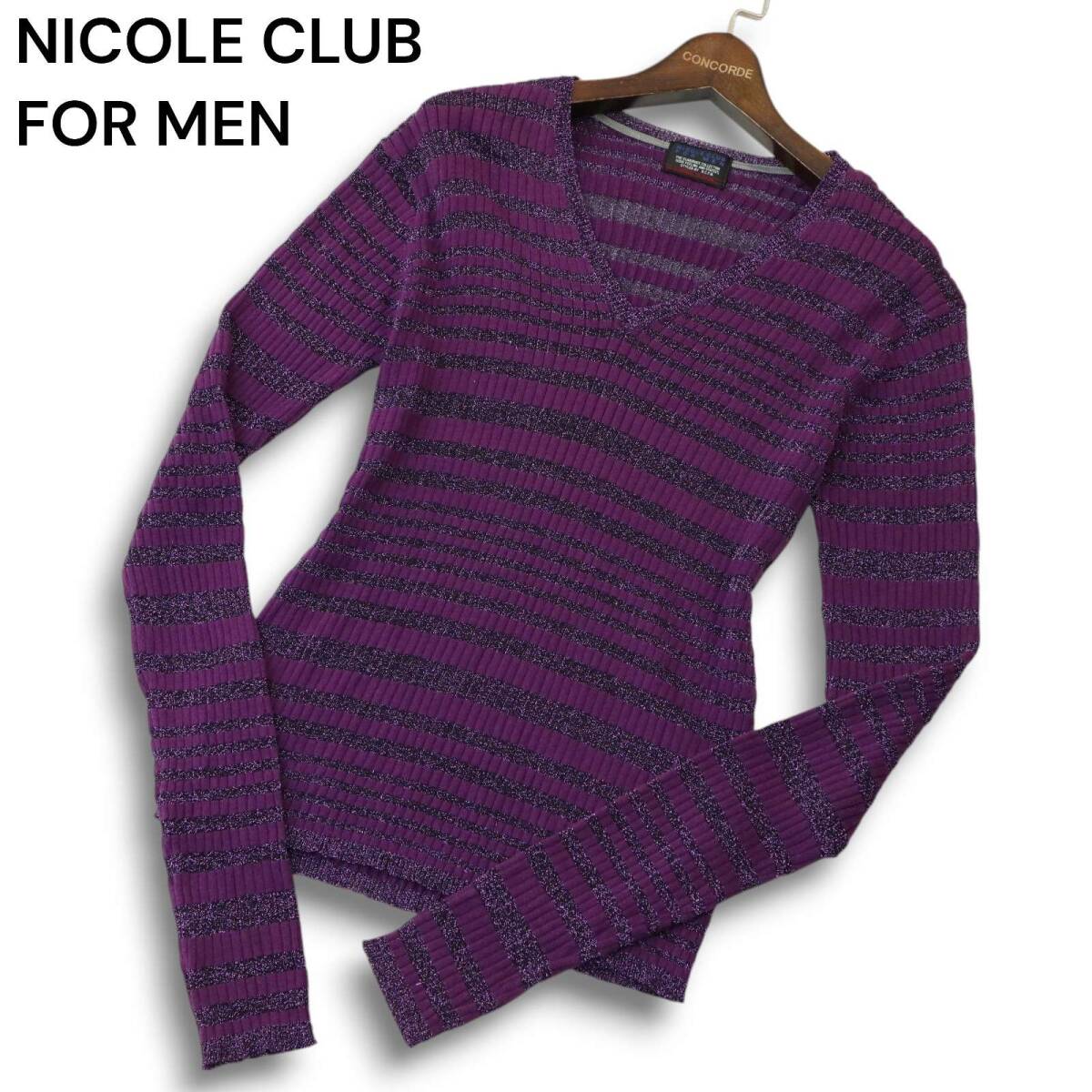 NICOLE CLUB FOR MEN ニコルクラブ フォーメン 通年 ラメ ボーダー セーター Vネック リブ ニット カットソー Sz.46 メンズ