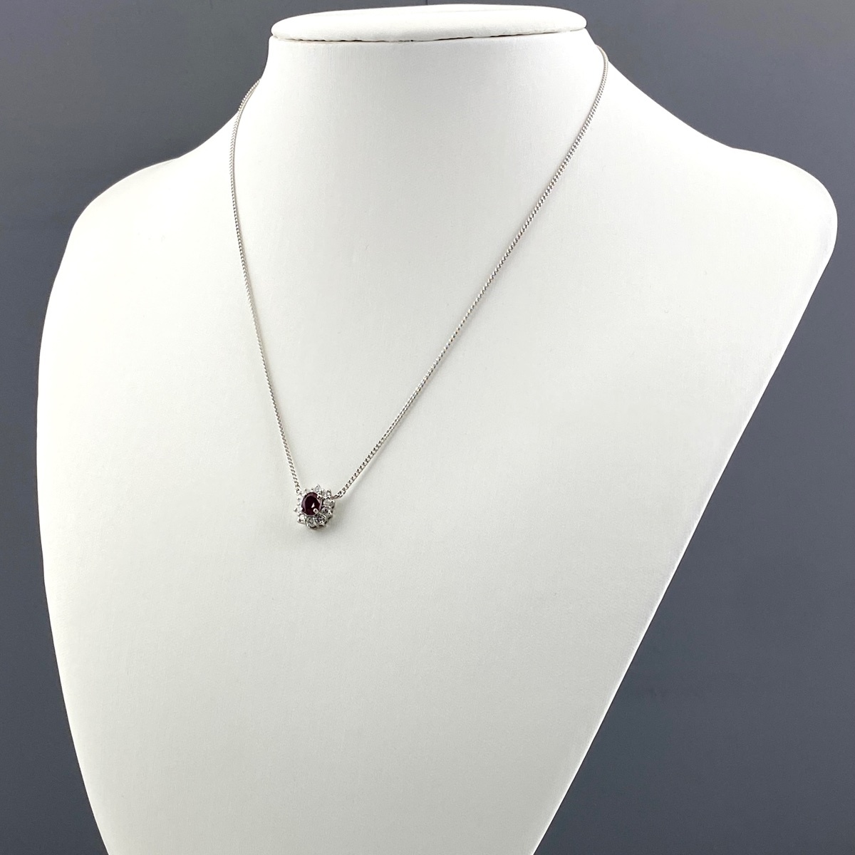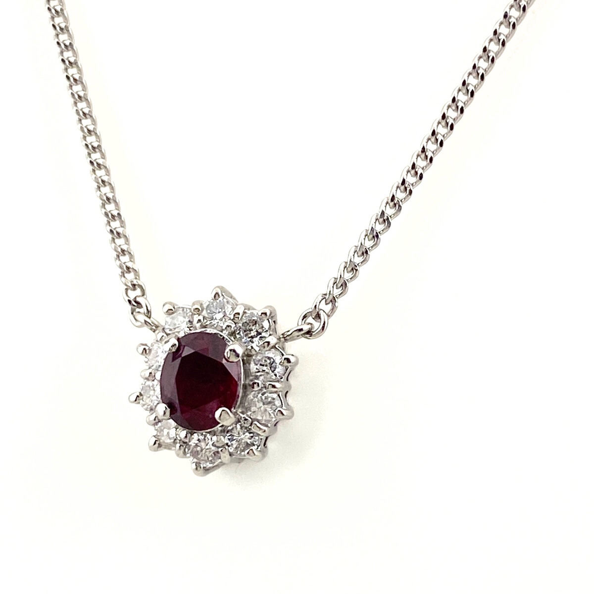 ルビー デザインネックレス プラチナ ペンダント メレダイヤ ネックレス Pt850 ルビー ダイヤモンド レディース 【中古】 |