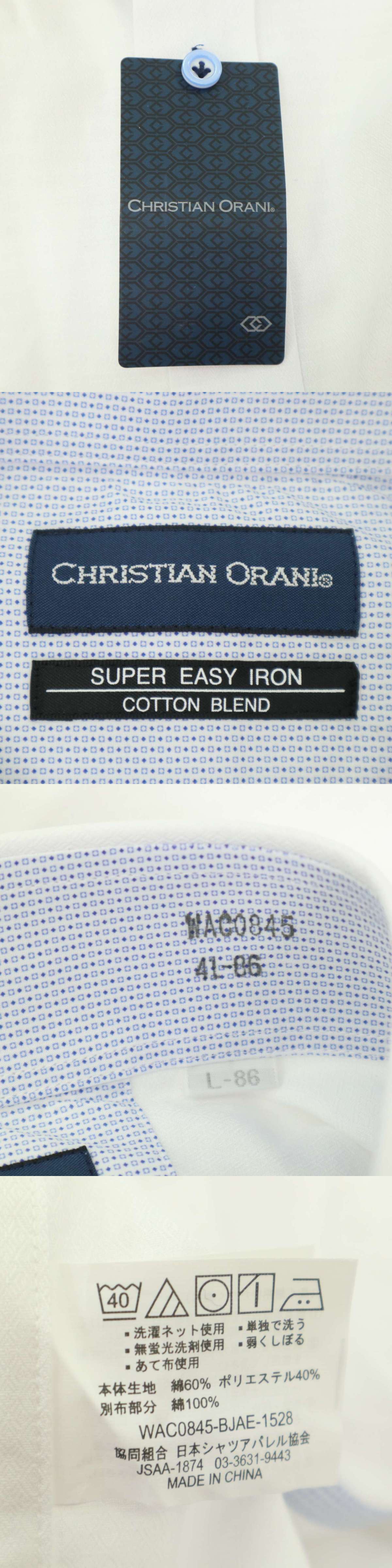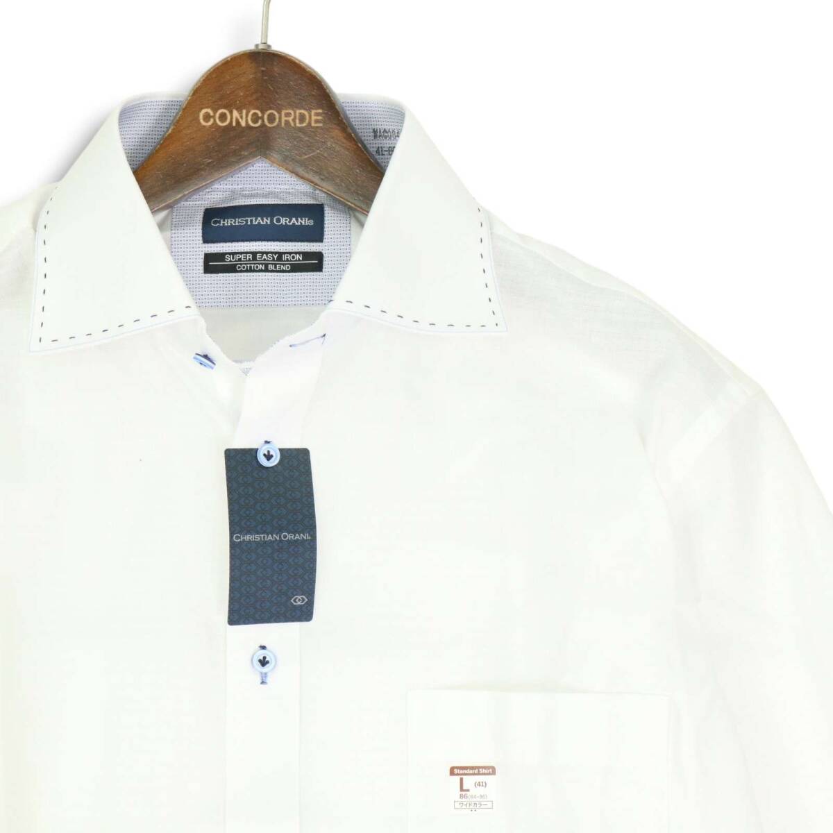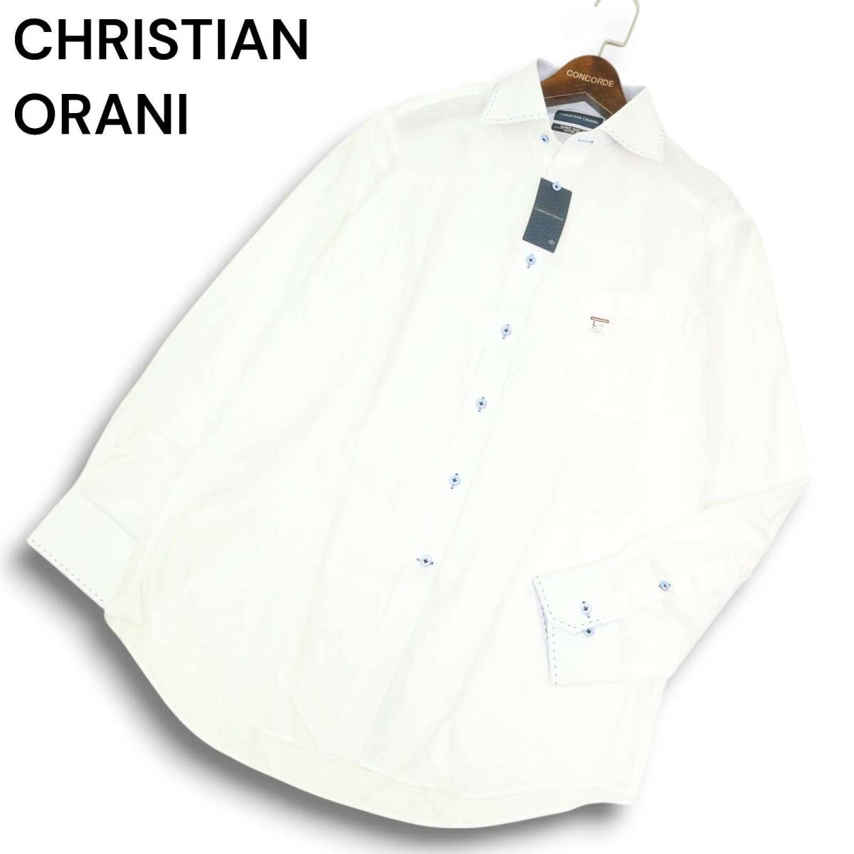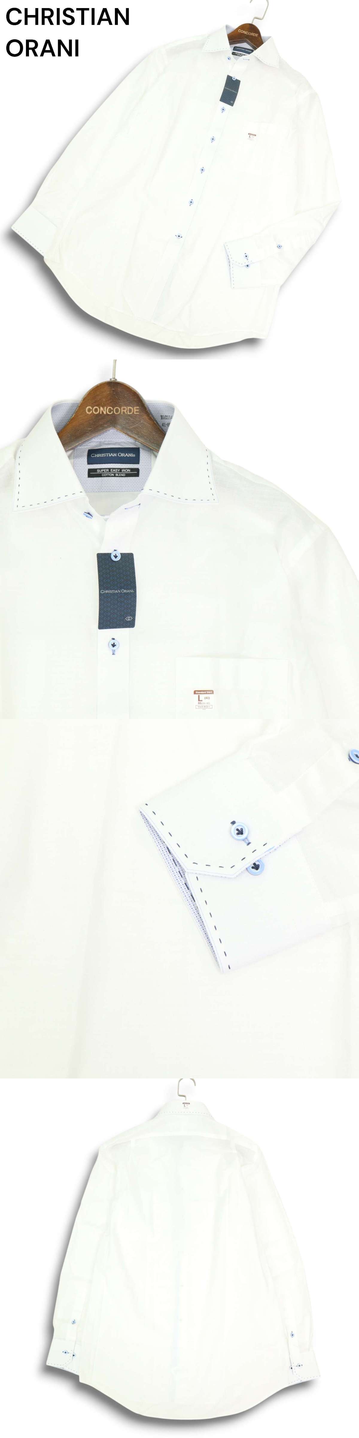 【新品 未使用】 CHRISTIAN ORANI クリスチャンオラーニ 通年 ステッチ★ 長袖 ドレス ビジネス シャツ Sz.L-86 メンズ 白