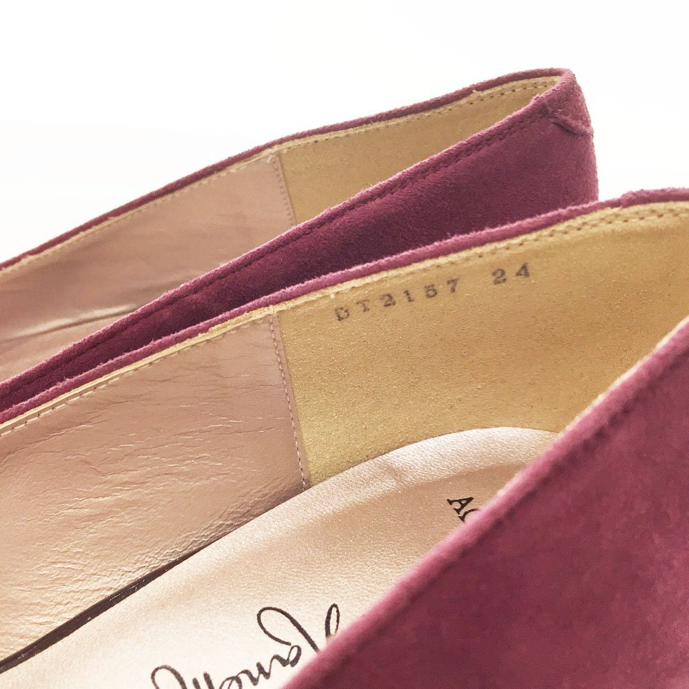 コメント | 銀座 かねまつはクラフトマンシップによる機能性の追求と、徹底したフィティングで最上の履き心地と上質のエレガンスを提案するシューズブランドです。 パテントレザーとスエードレザーが切替になったヒールパンプスです。非常に高級感があり、お出かけからパーティーシーンまで幅広く活躍します。やや落ち着いたカラーリングですので、派手な印象はありません。通年で活躍します。 状態はUSEDです。踵のわずかなスレ、スエードにわずかなスレはあるものの、使用感はそれほどありません。とてもキレイなお品です。ご理解ある方の入札をお待ちしております。 |