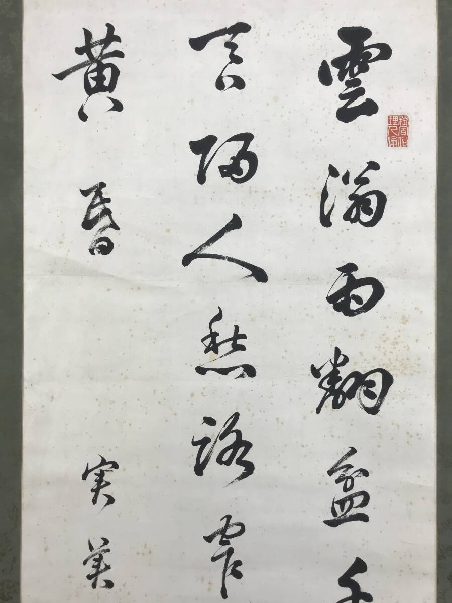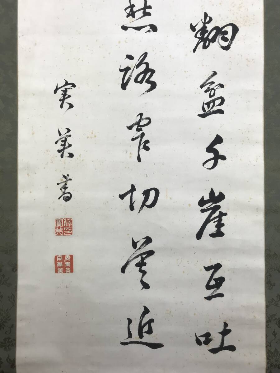 【作品状態】 本紙は紙本肉筆です。本紙は薄汚れ、全体に多数の糊シミあります。表装は概ね良好です。
