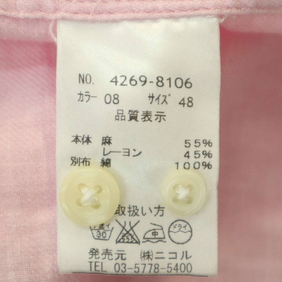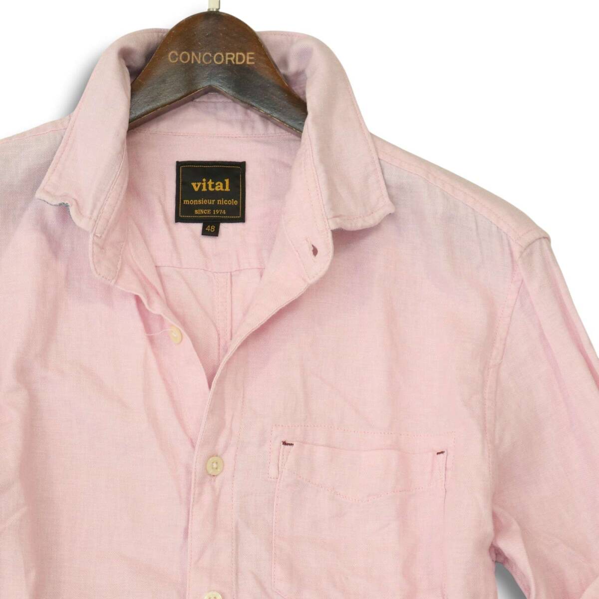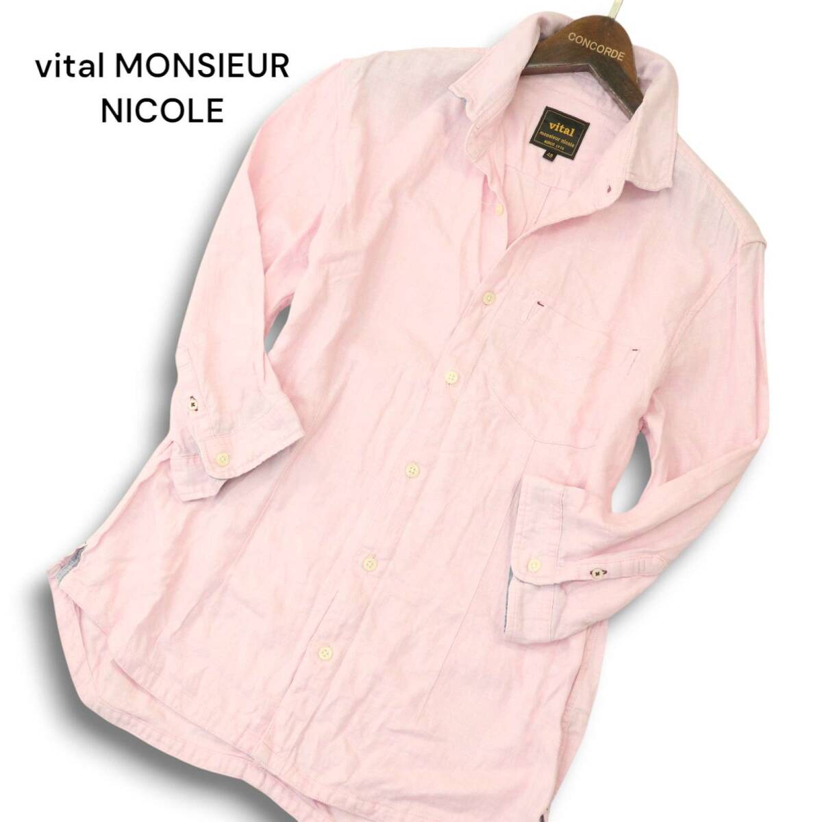 vital MONSIEUR NICOLE ムッシュ ニコル 春夏★ 麻 リネン 7分袖 スリム シャツ Sz.48 メンズ ピンク