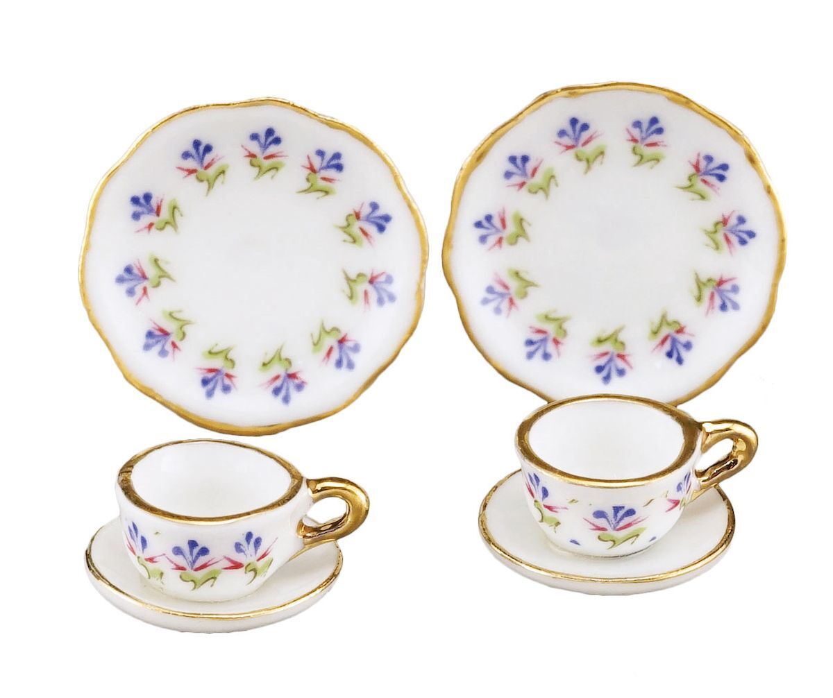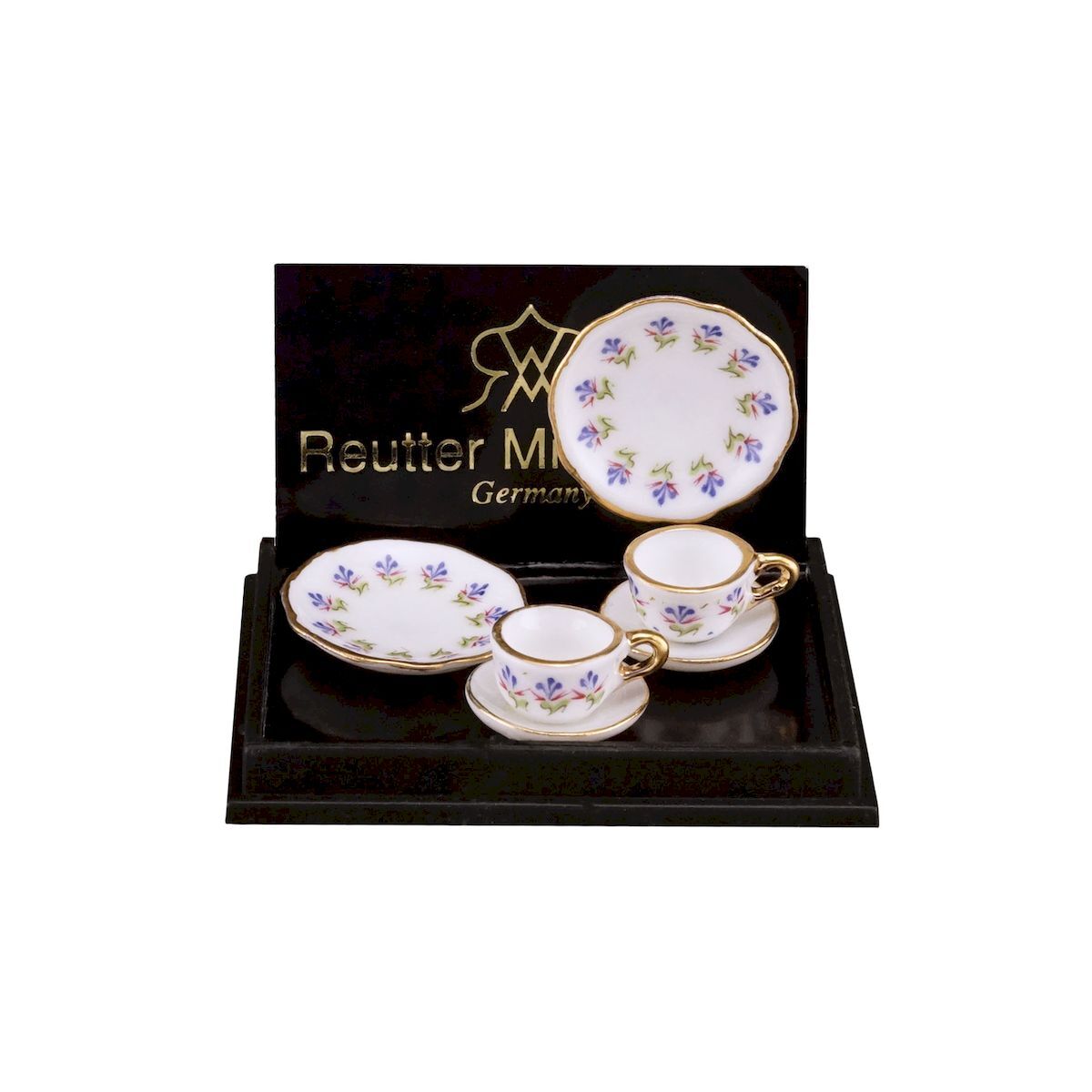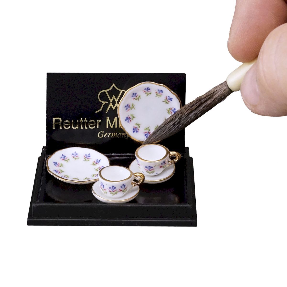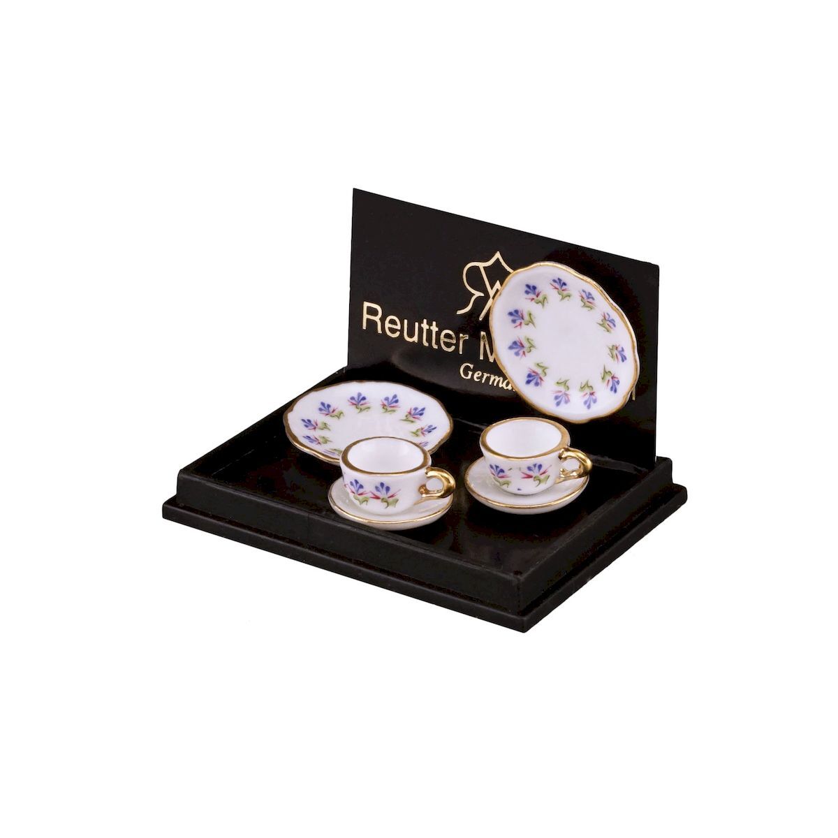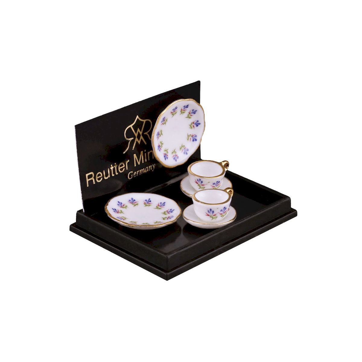 ドイツ ロイター社のミニチュアです。お二人様用のコーヒーセットです!恋人気分に戻って、これで優雅なティータイムはいかが?!お皿の直径約21ミリ。ソーサーの直径約12ミリ。カップの口径約8ミリ。カップとソーサーは接着されています。アクリルケース入りです。アクリルケースのサイズ:W55xD42xH35。アクリルケースのサイズ:W80xD55xH48ミリ。