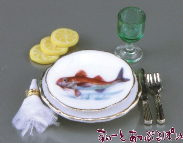 今日のメニューは魚料理ですね!料理によって食器を変えるのが、上流階級への第一歩ですよ!さあ、みんなで頑張りましょう!!アクリルケース入りです。アクリルケースのサイズ:W55xD42xH35。※現在、グラスがブルーに変わっておりますのでご了承ください。