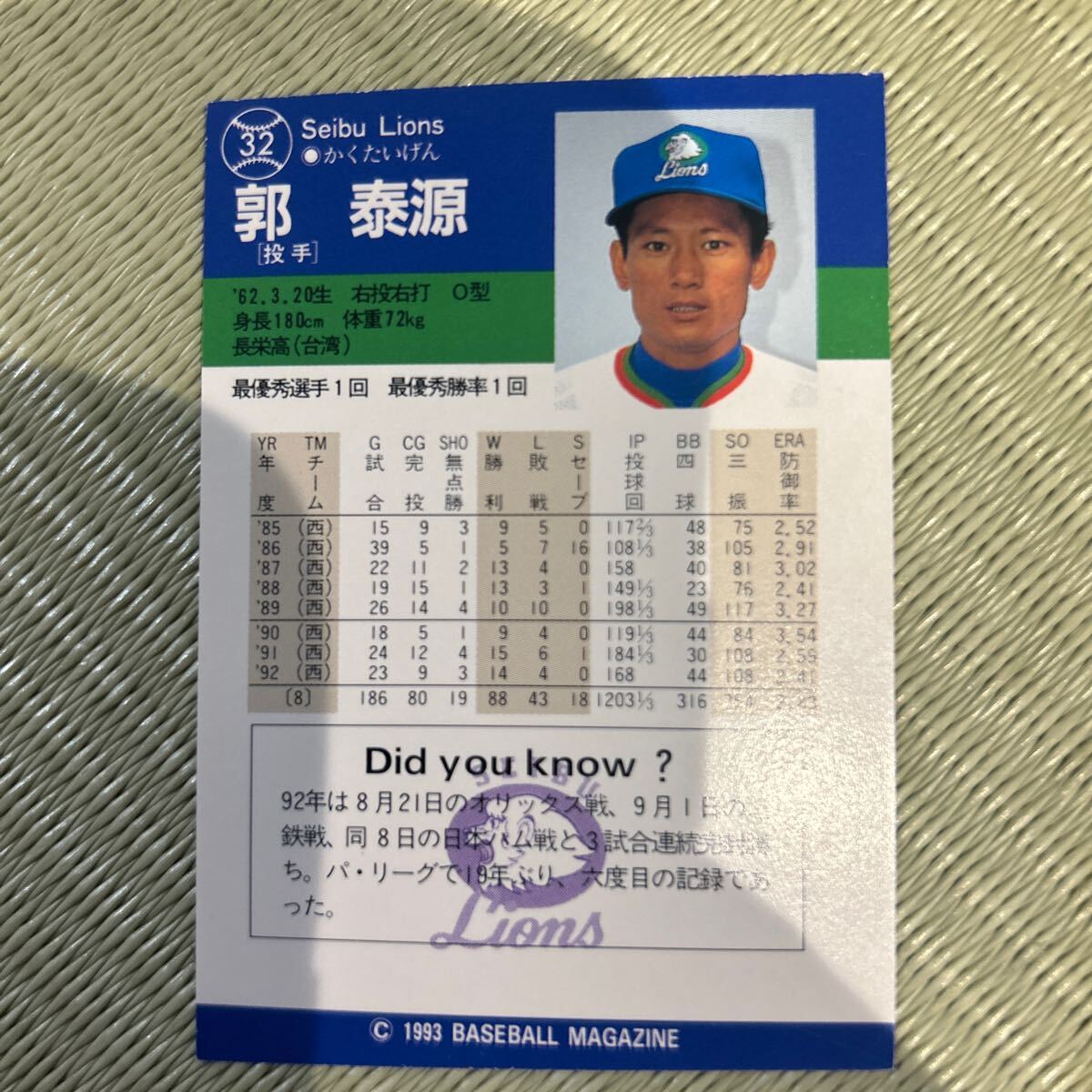 1993BBM 32 郭泰源 西武ライオンズ