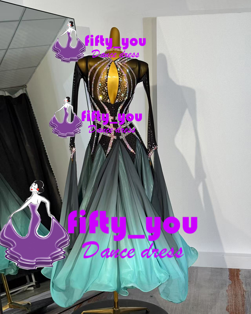 新品fifty_youセミオーダードレス レディース社交ダンス衣装  モダン・スタンダードドレス競技発表パーティドレス  お洒落グラデーション