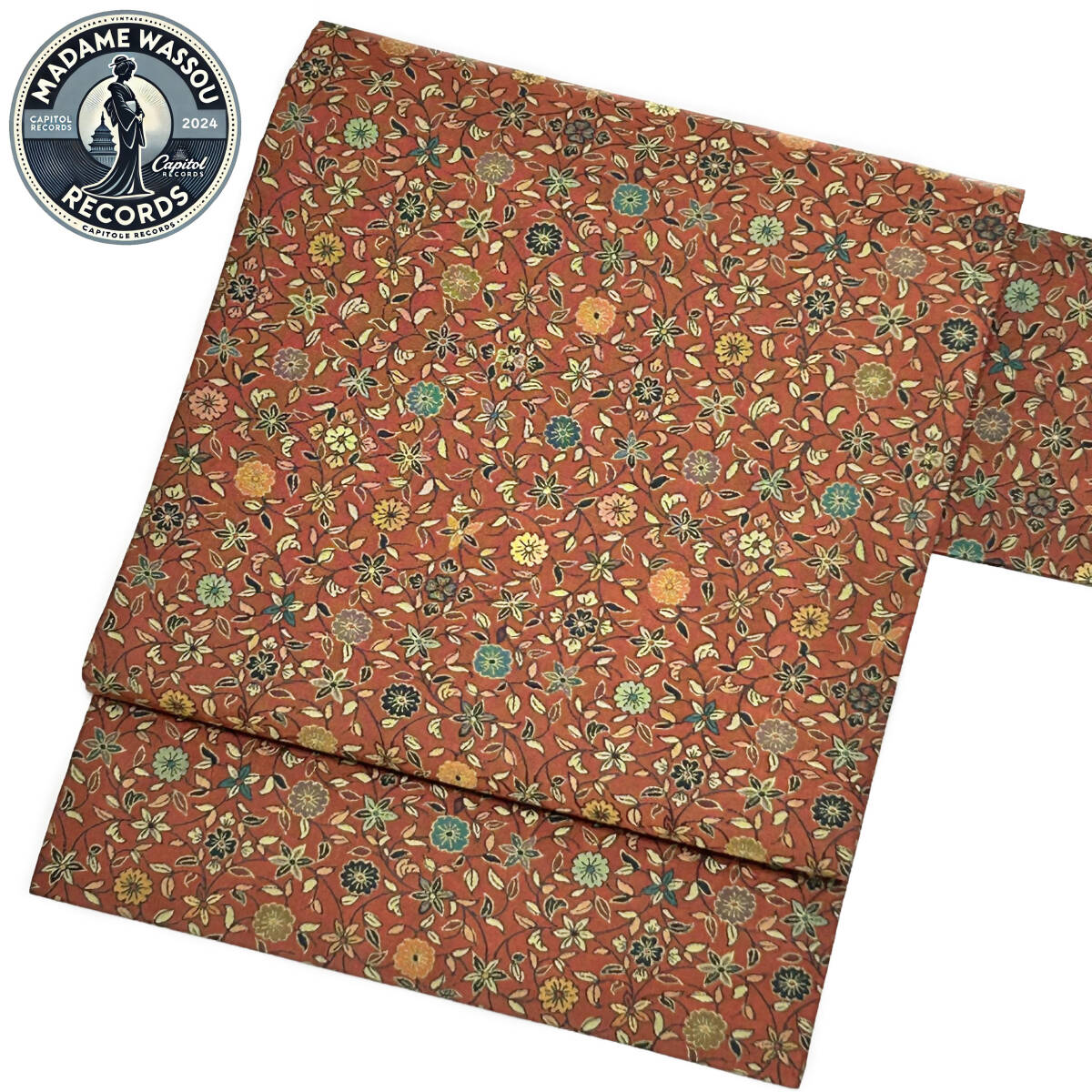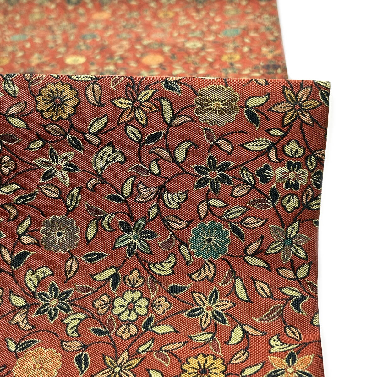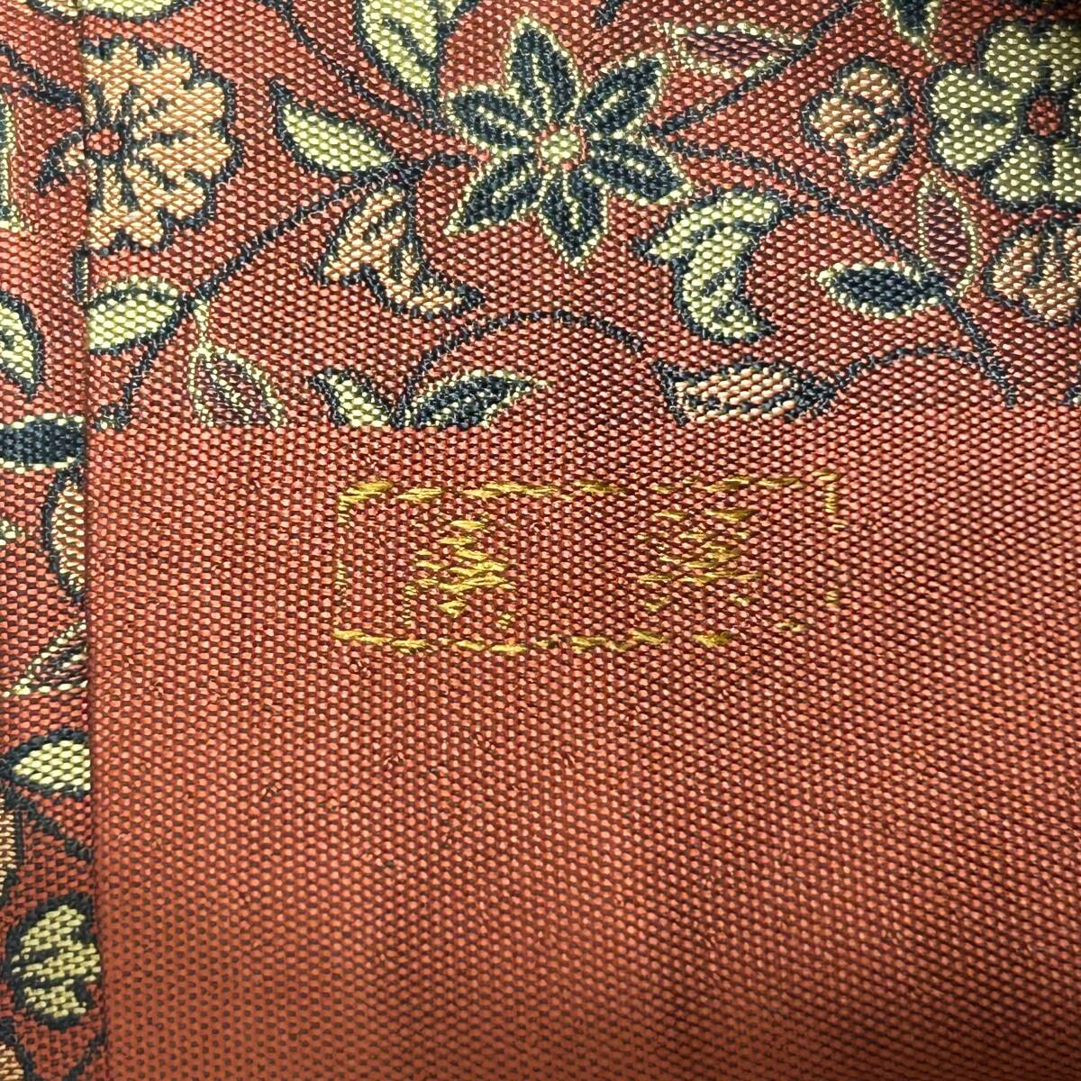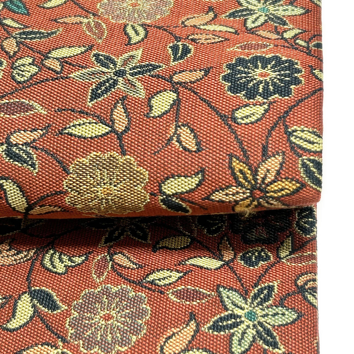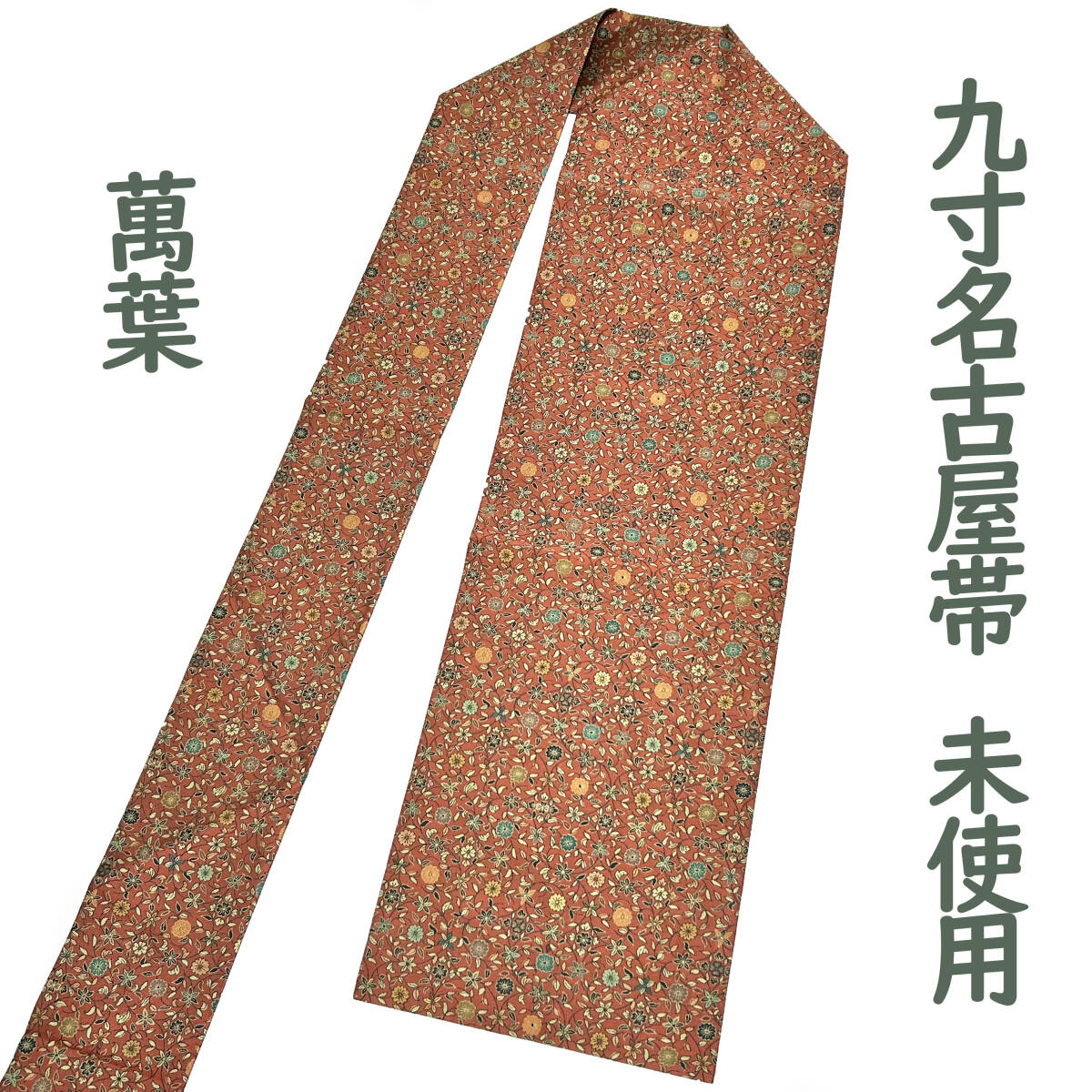 九寸名古屋帯 萬葉 西陣織 正絹 未使用 花柄 全通柄 オレンジブラウン カジュアル 仕立て上がり 美品 MWR-No.172 07072025 マダム 和装