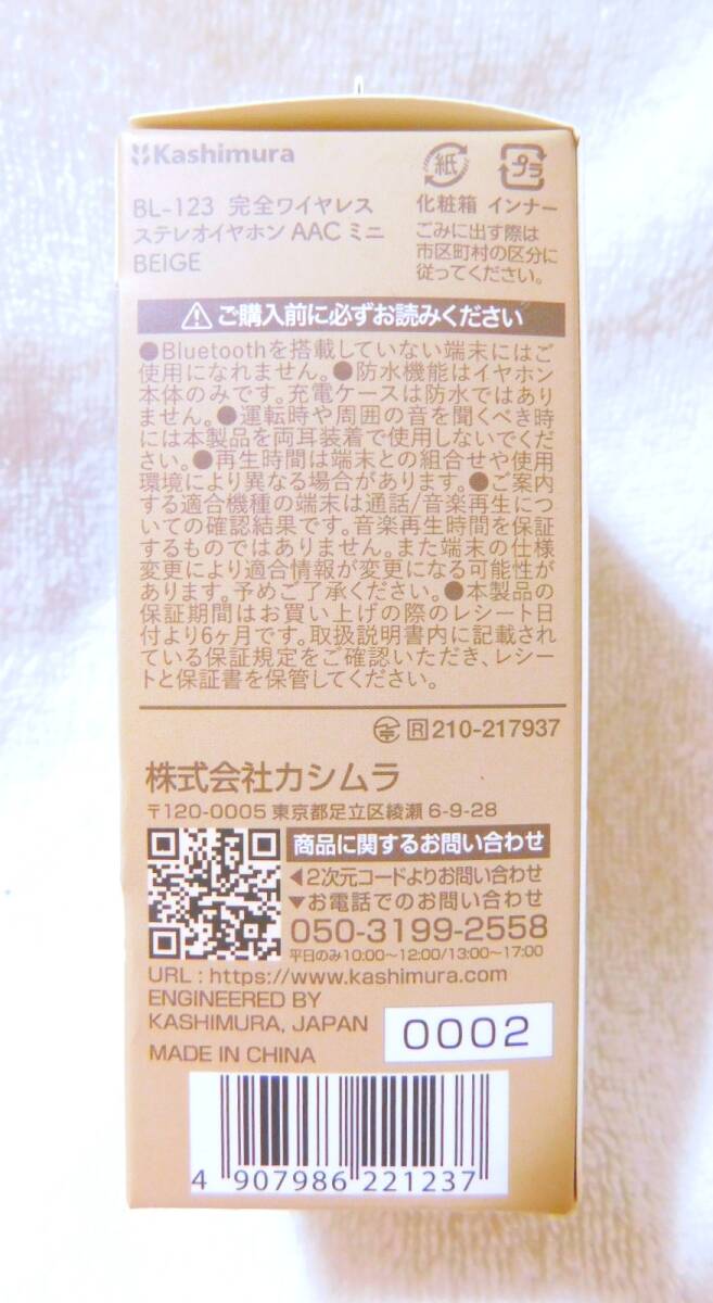 | 商品説明 | 未開封の カシムラ 完全ワイヤレス ステレオイヤホン AAC ミニ BL-123 ベージュ 生活防水対応 の出品です。 詳細については メーカーの商品紹介ページhttps://www.kashimura.com/goods/keitai/bluetooth/bl123.htmlにてご確認ください。 パッケージには細かなスレなどのイタミがありますが、まったくの未開封品ですので安心してご使用いただけると思います。 発送は ※定形外郵便の場合(送料290円・追跡不可・郵便受けへの投函・発送からお届けまで3~7日以上かかる場合あり) ※レターパックプラス(送料600円・追跡可・配達員による対面渡し・発送からお届けまで速達郵便同等のスピード) どちらかの発送方法を選んでいただけます。 |