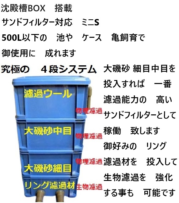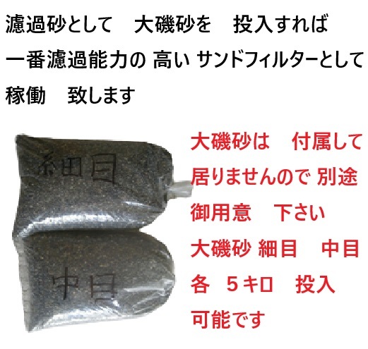 サンドフィルター 対応 ミニSは 砂を 使用して 濾過して 頂ければ