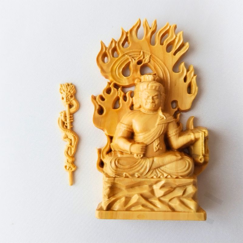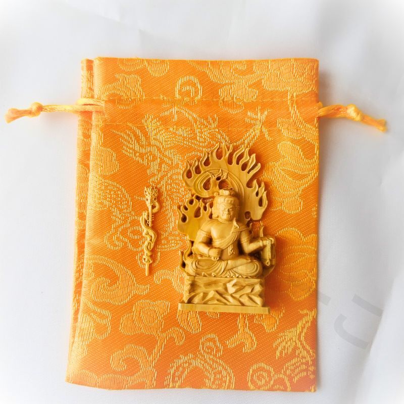 仏像 不動明王像 木彫り 柘植 お守り袋 密教 お不動さん 守本尊 酉年 懐中仏像 仏具 金運 財運 勝負運 開運 出世 厄除け 商売繁盛 小さい