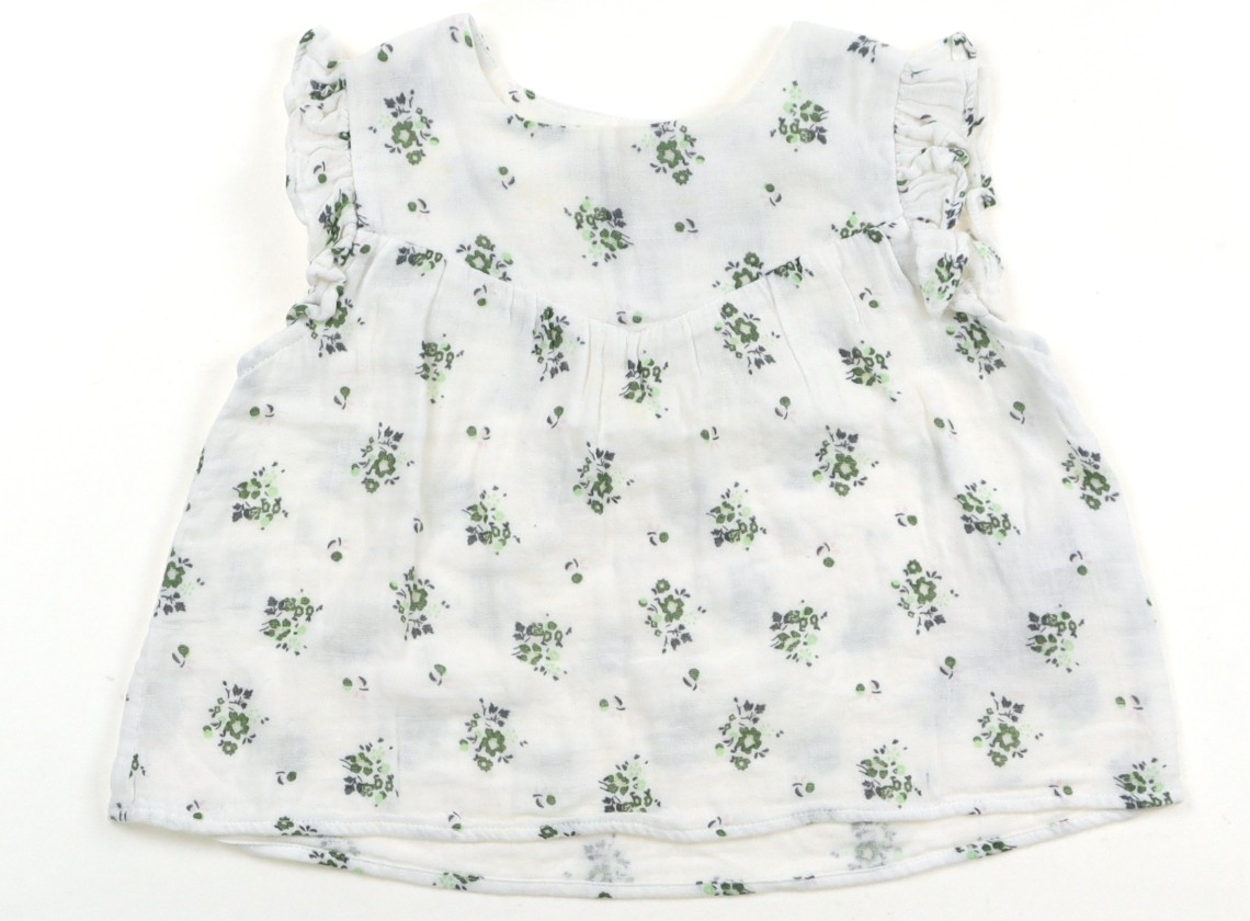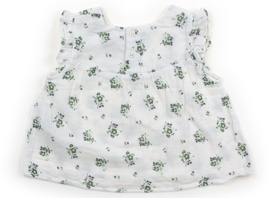 実際のサイズ表記は12m/74cm。コットン地。首周りに薄っすら黄色シミあり。やや使用感がありますが、まだまだお使い頂けます。