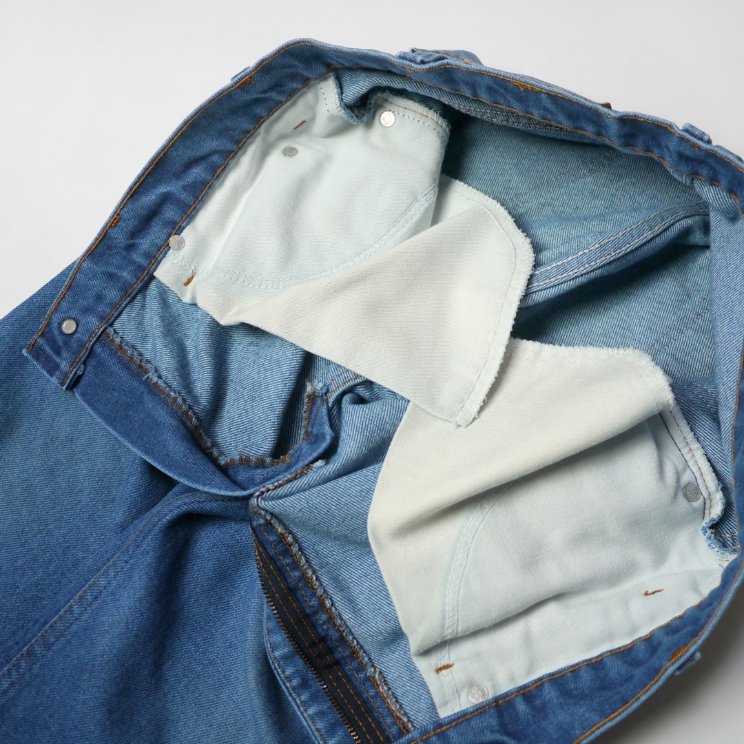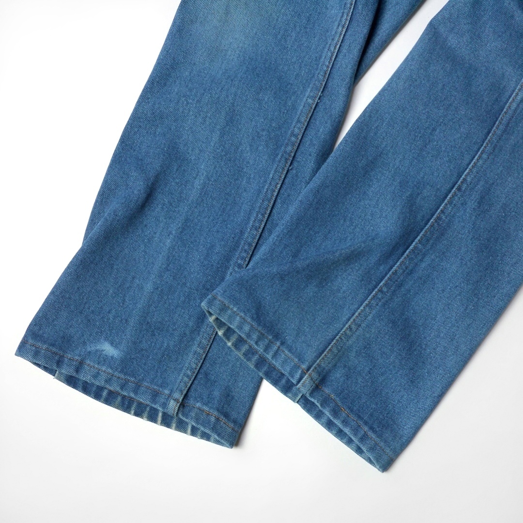 ■ブランド 80s、Levis、20516-0914、MADE IN USA ■素材 64% COTTON、36% POLYESTER ■詳細 アメリカで購入したリーバイスの516ストレッチデニムパンツです。 80年代(1986年製)、ハチマルのアメリカ製でトップボタン裏刻印575、リーバイスジッパー、オレンジタブのタイプになります。 サドルマン時代の結構珍しいモデルでシルエットはブーツカットになります。 ストレッチジーンズならではの色味と色落ちでヒゲやアタリなどイイ感じに仕上がっております。 ■状態 デニム特有のアタリ、スレ、フェード、モモ周囲などに薄汚れと薄染み多数、裾裏に多少の摩耗、裾上に小さな色抜け?あと、センターシームあと、スレーキに多少の毛玉と薄汚れあり。 他、裾は当時に個人作業で裾上げされており左右差が1cmほどあります。 特に問題ありませんが、縫製はやや粗さがあり手縫いでの補強?補修?が一部あります。 着用に問題あるダメージはなく良好です。 ■サイズ 表記 W34 L32 (実寸W33.5 L26 *下記参考下さい) ウェスト 42.5cm×2 股下 67cm、66cm 総丈 95cm、94cm 裾幅 22cm 股上前 30cm 股上後 39cm ワタリ 30cm ヒップ 52cm ■注意事項 状態は細かく確認しておりますが、傷や汚れの見落とし、実寸誤差、色味差異など生じる場合がございます。 不明な点がありましたら入札前にご質問下さい。 商品にあわせて洗濯やクリーニングメンテナンスを施しておりますが、ビンテージやアンティークなど中古品になりますので特性のご理解をお願いします。 |