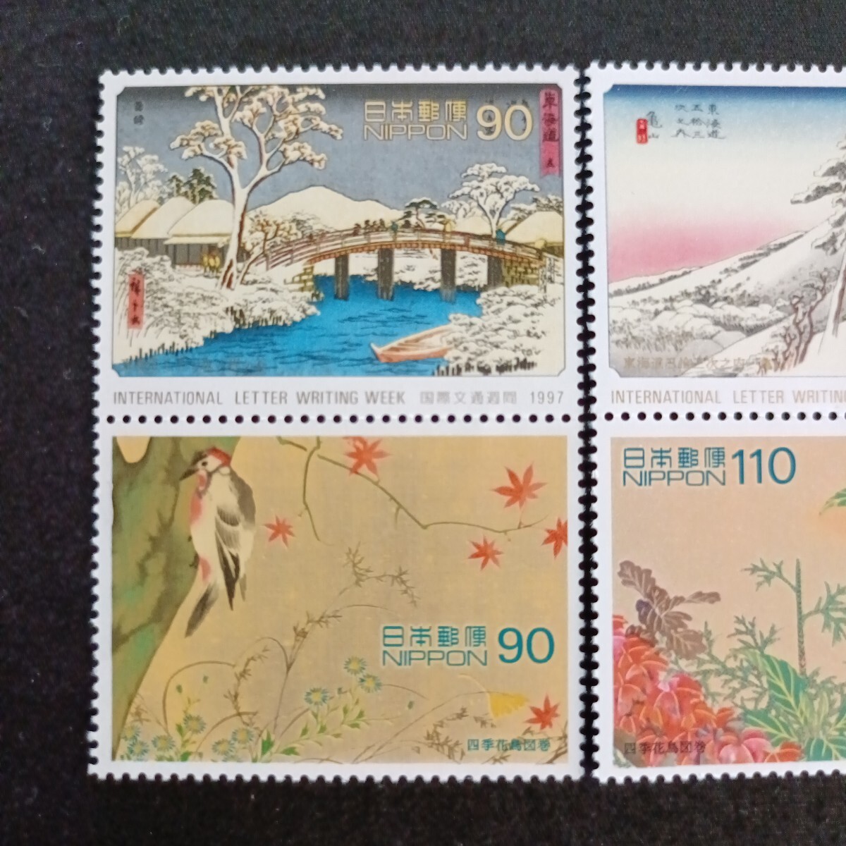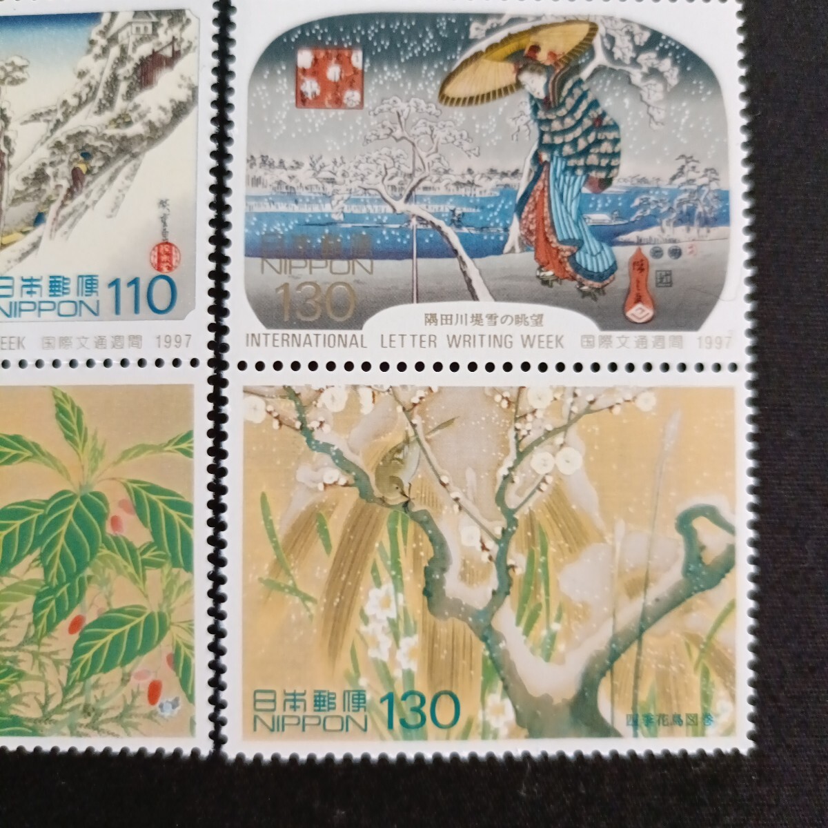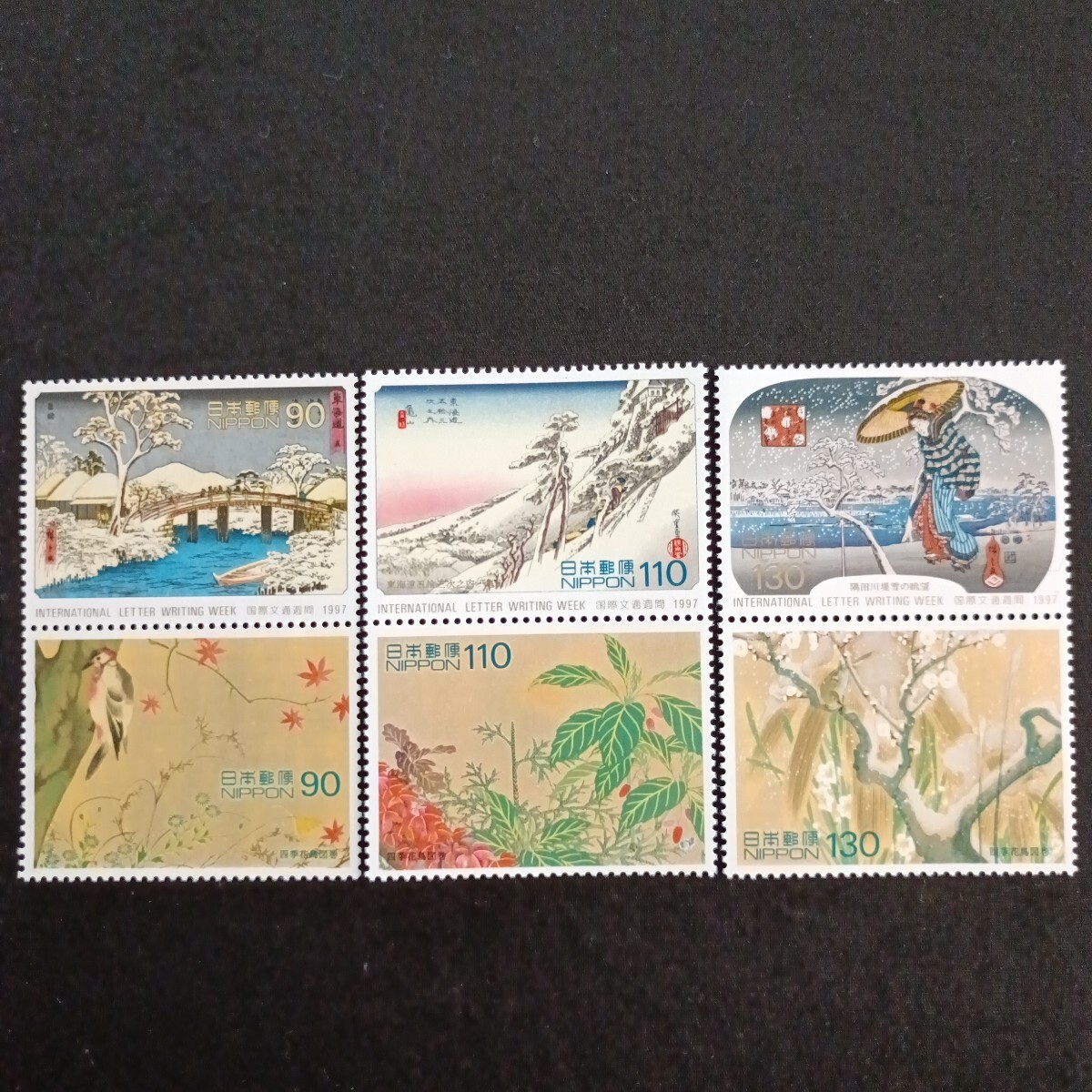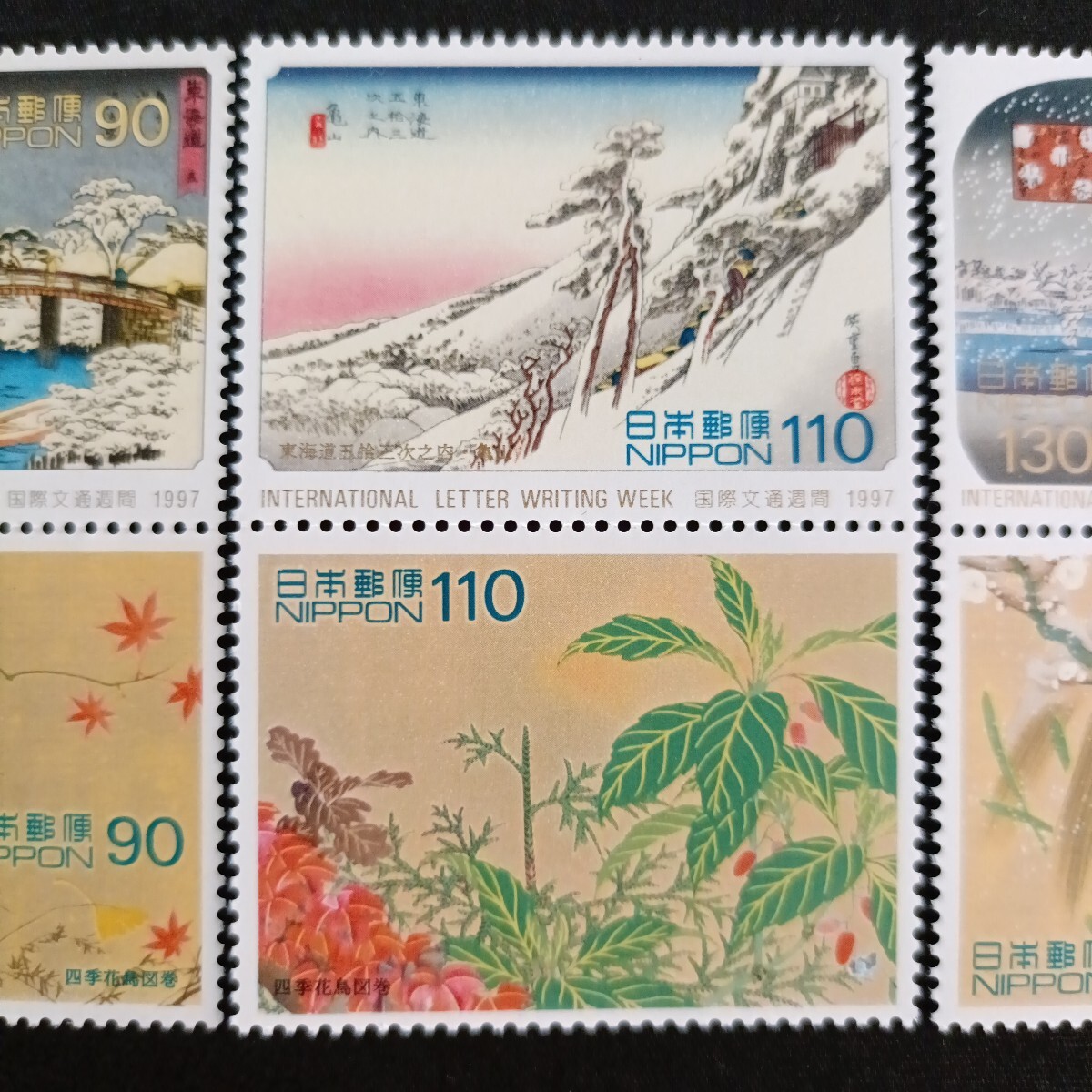 ★国際文通週間。(1997年)。平成10年。美品。6種set。「東海道五拾三次」。グリーティング。文通週間。平成切手。記念切手。切手。