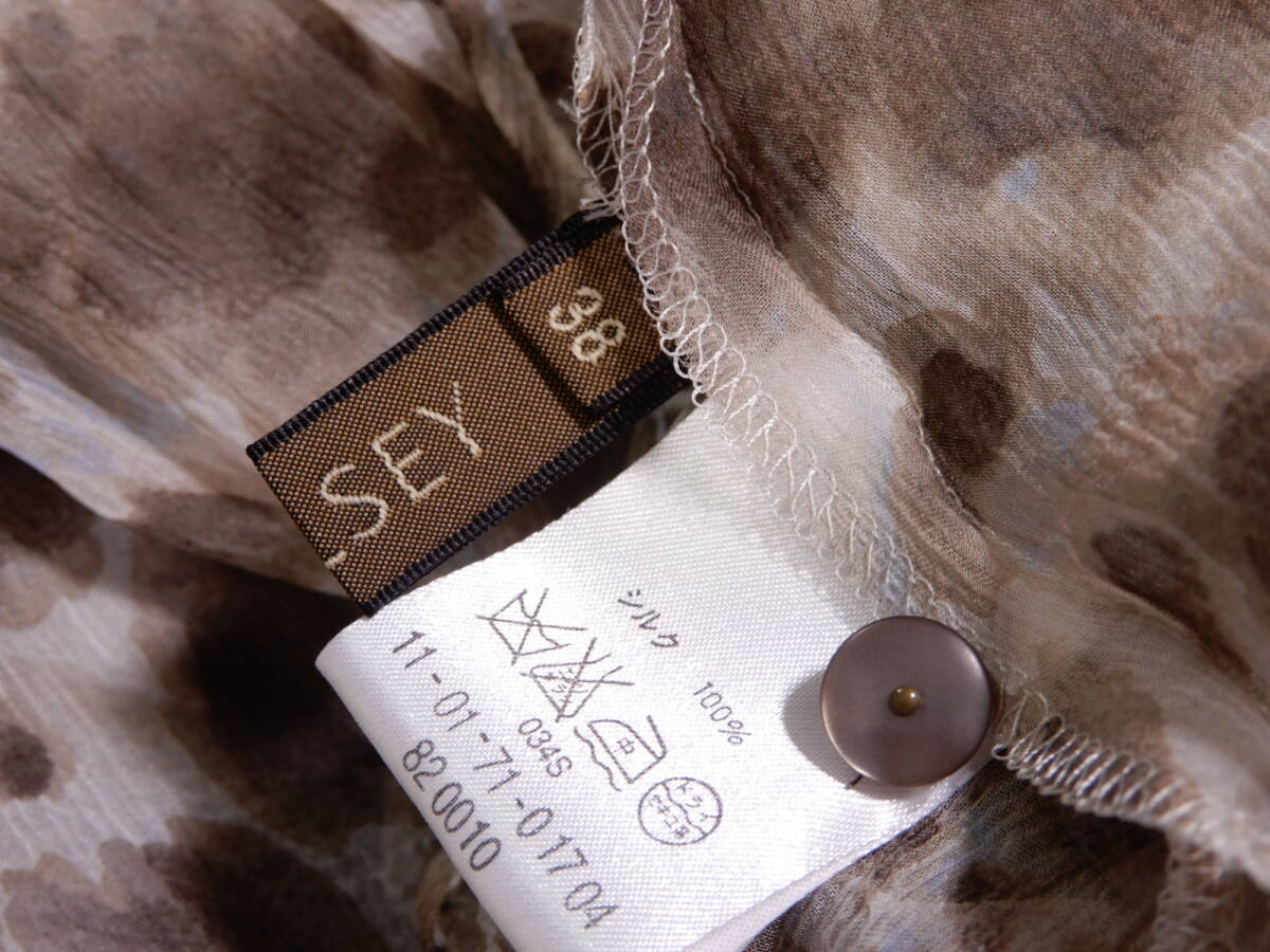 ボールジー ブラウス サイズ表記:38 お色:べージュ系、ブラウン系、ブルー系 素材:シルク100% 平置き実寸で 身幅58 着丈69 裄丈59㎝位です。 |