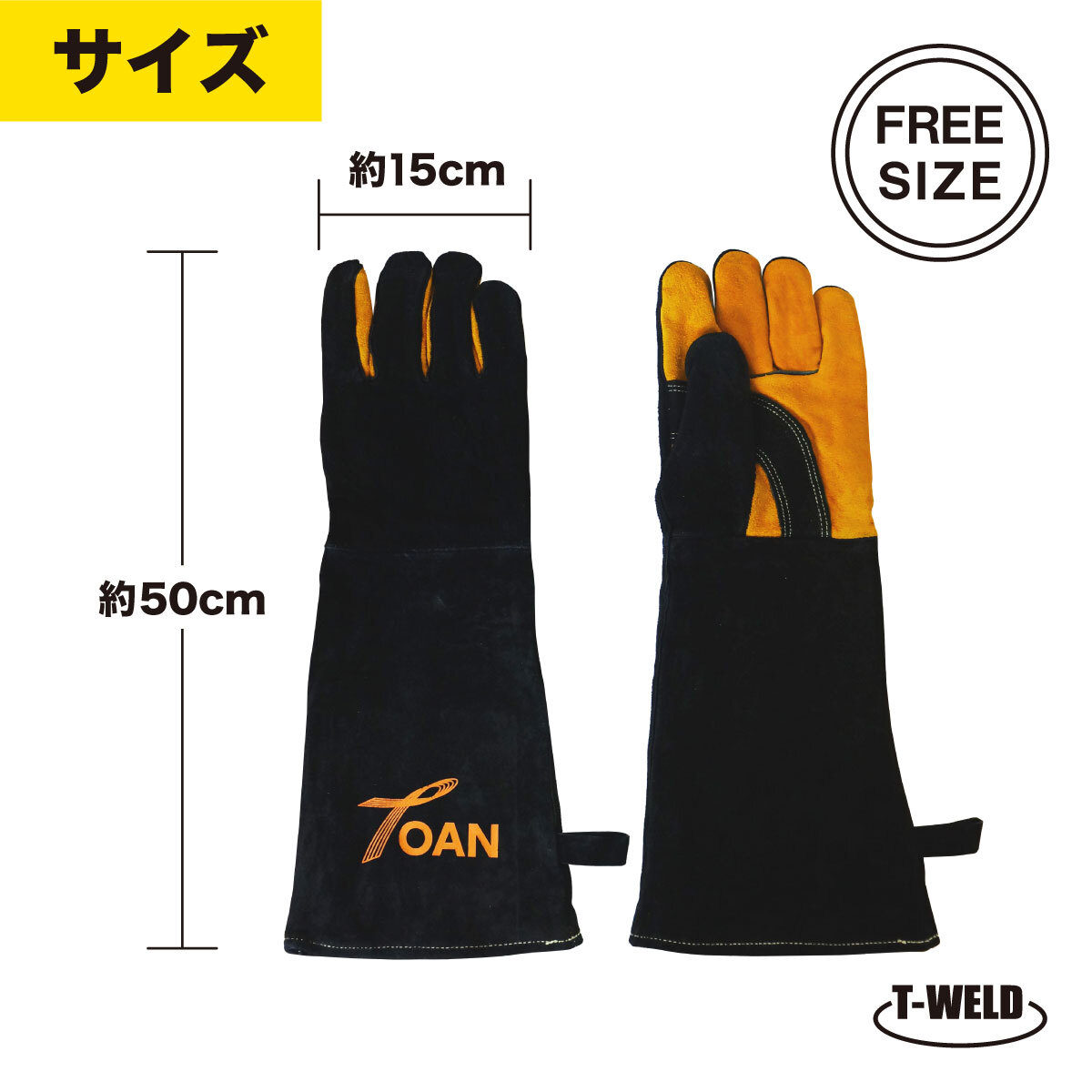 牛革素材 5本指 ロング手袋 長さ L:50cm 厚い手袋裏地付 黒色