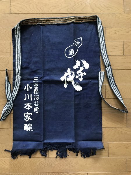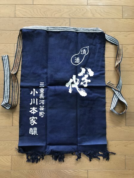 当時物 未使用 デッドストック 清酒 八千代 三重県河芸町 小川本家醸 前掛け エプロン サイズ:約47㎝×69cm  TB354