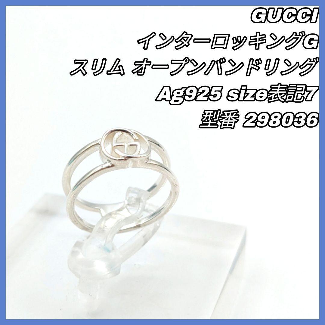 【最終値下げ】GUCCI グッチ インターロッキングG スリム オープンバンド リング 925 6号 7表記 Ag925 SILVER シルバー 298036 | ||