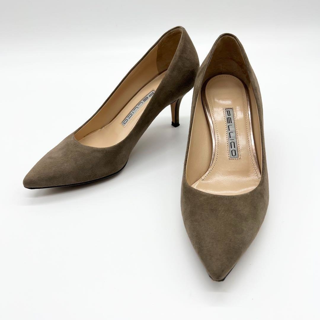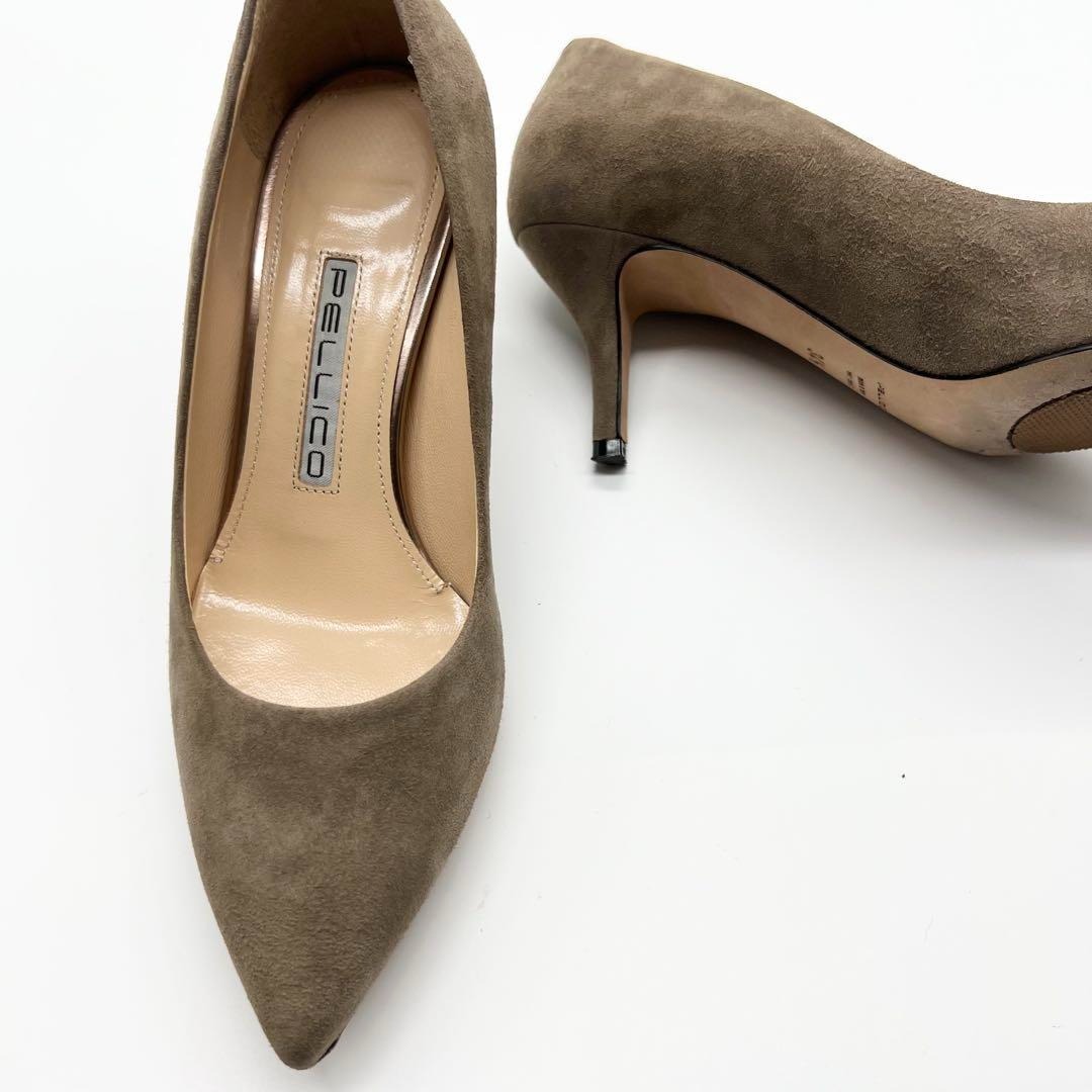 ペリーコPELLICOスエードパンプスポインテッドトゥヒールパンプスグレージュ通勤フォーマルきれいめイタリア製高級靴レディースシューズオケージョン