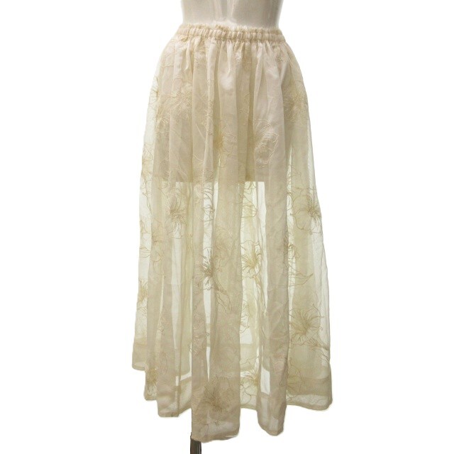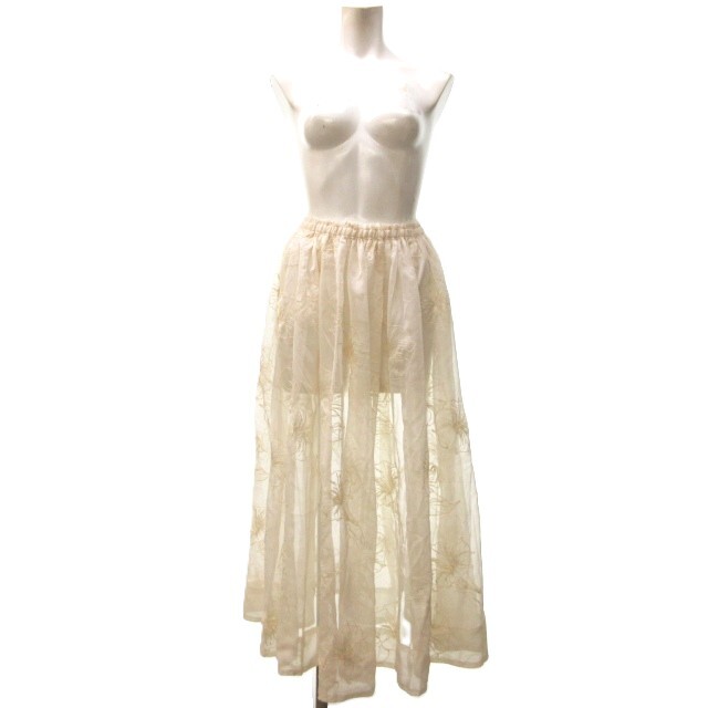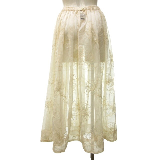 未使用品 ライト WRYHT タグ付き 24SS GATHERED FOLK SKIRT シアーロングスカート ギャザー 花柄刺繍 オフホワイト 1 約S