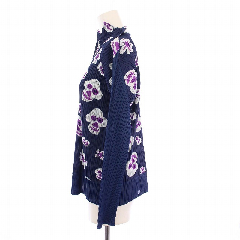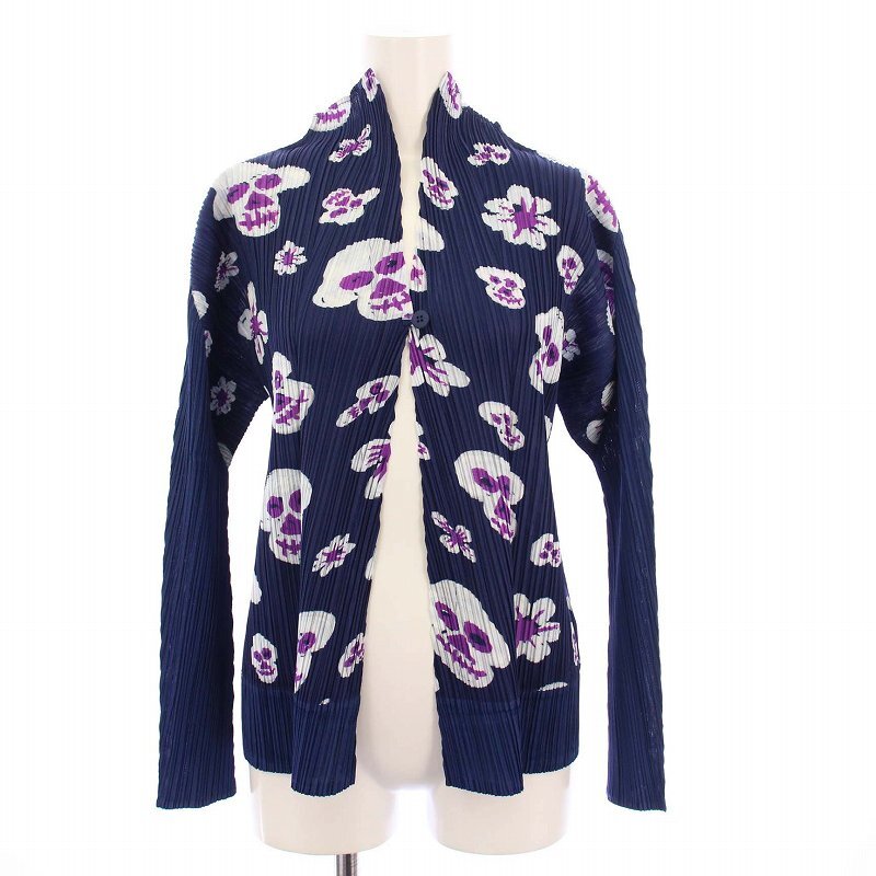 プリーツプリーズ PLEATS PLEASE イッセイミヤケ プリーツカーディガン ハイネック スカル 3 ネイビー PP13-JO724 /KH レディース
