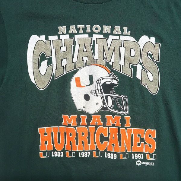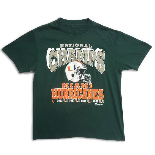 古着 90年代 MIAMI HURRICANES カレッジチーム プリントTシャツ グリーン 表記:- gd402995n w40624