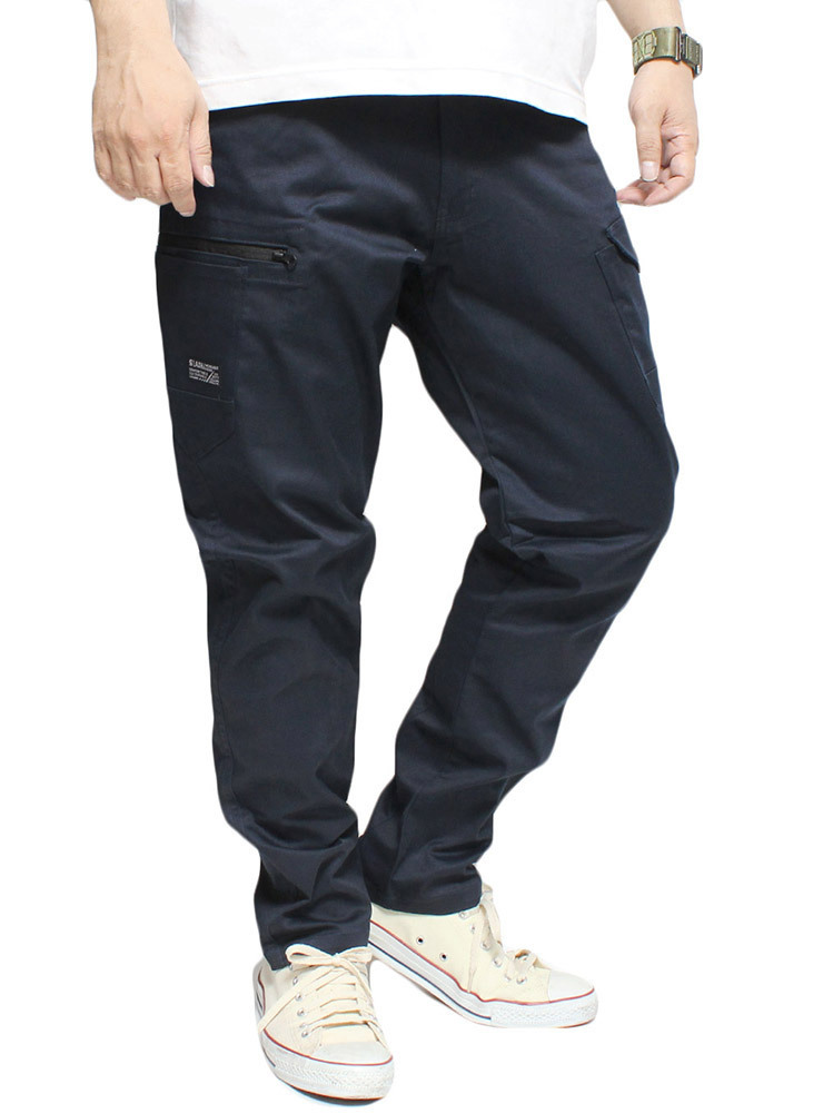 商品名 | 【新品】 5L ディープネイビー カーゴパンツ メンズ 大きいサイズ ストレッチ 吸汗速乾 サイドZIP ツイル テーパードパンツ |