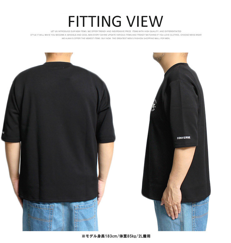 | 商品名 | 【新品】 2L ダークブルー コンバース(CONVERSE) 5分袖 Tシャツ メンズ 大きいサイズ 接触冷感 ロゴ プリント クルーネック カットソー |