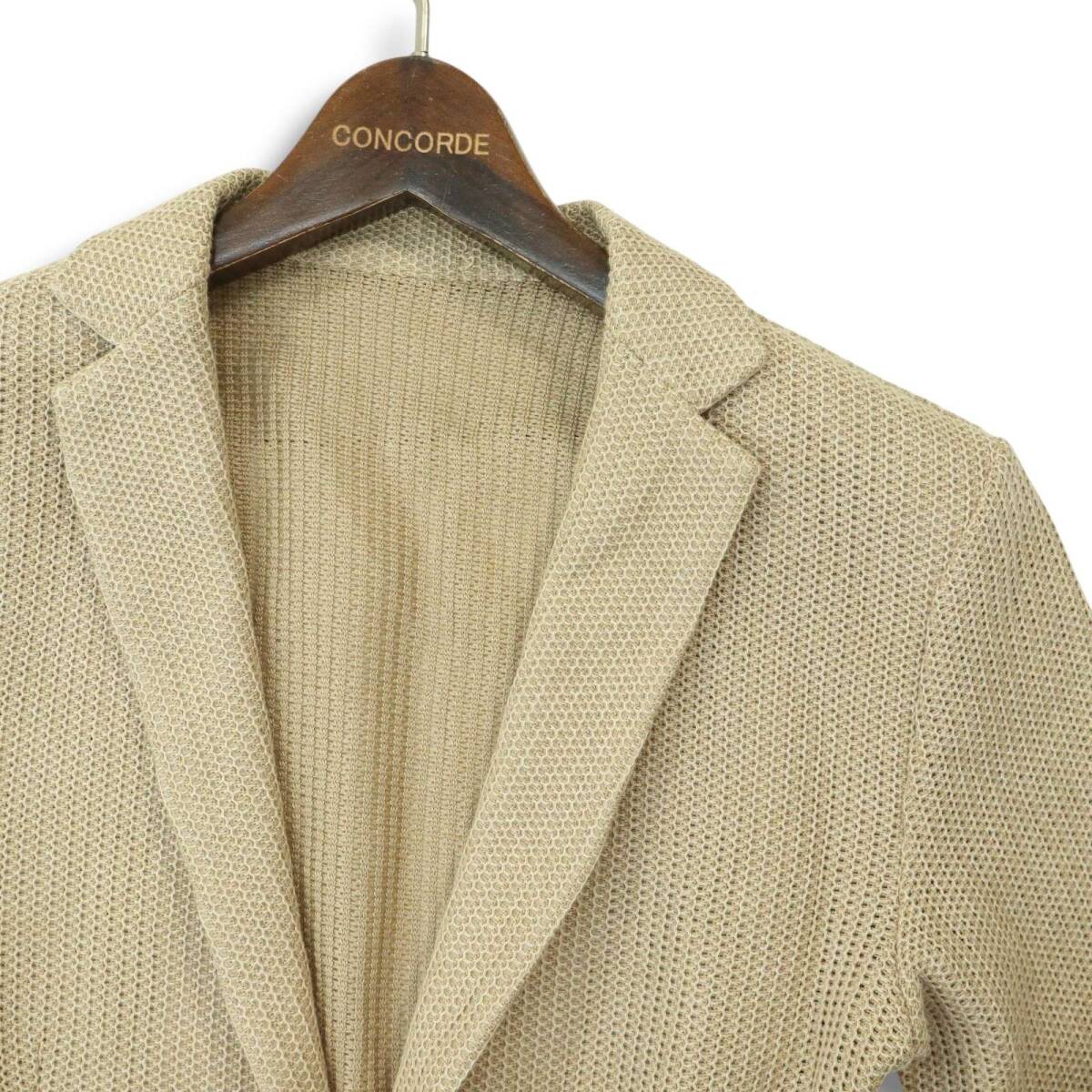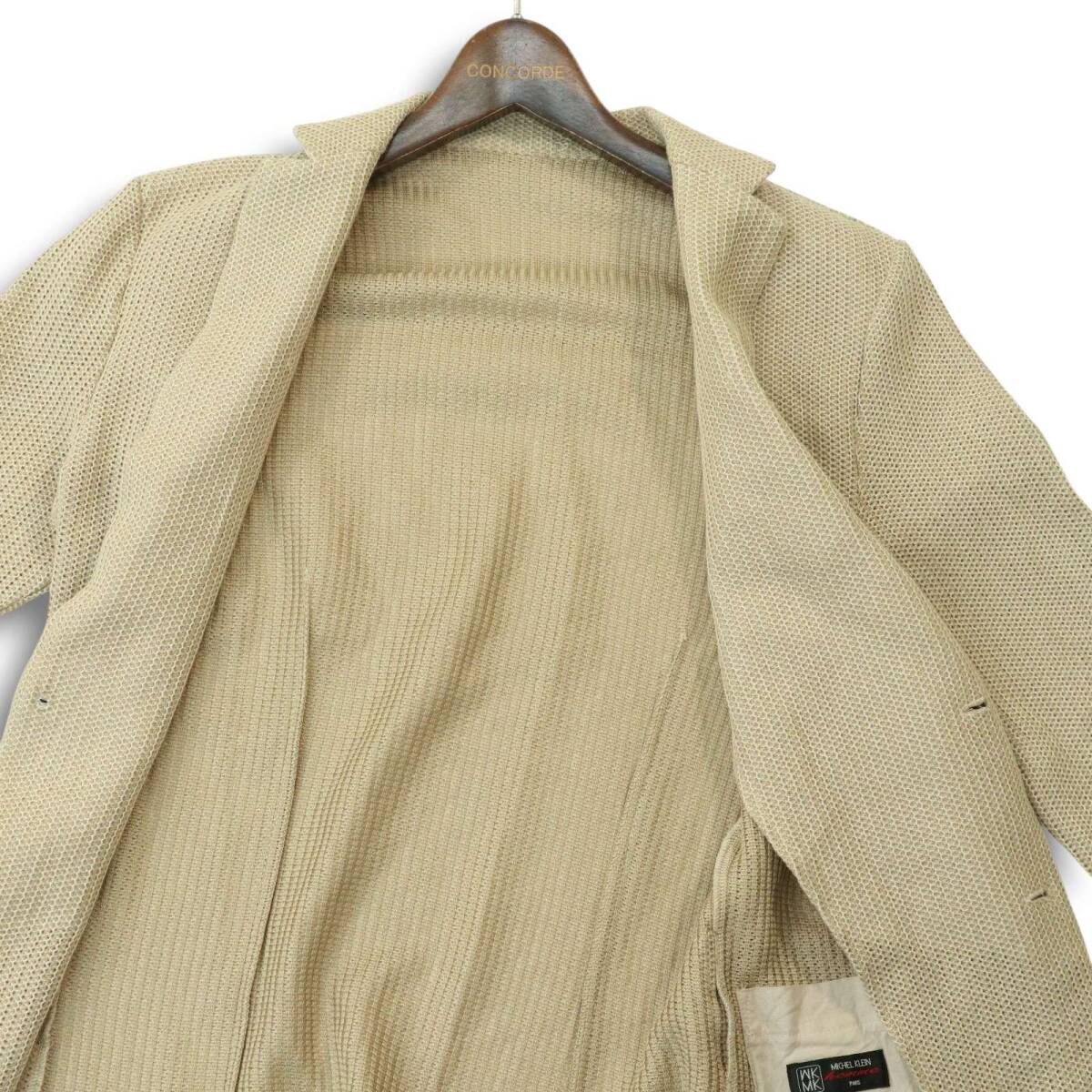 MICHEL KLEIN HOMME ミッシェルクラン オム 春夏 7分袖★ コットン ニット テーラード ジャケット Sz.46 メンズ ベージュ