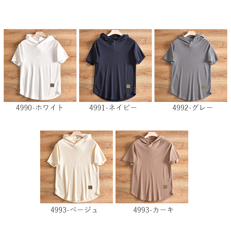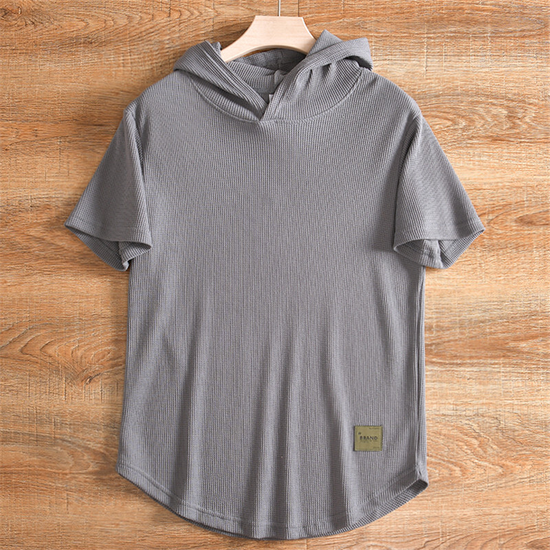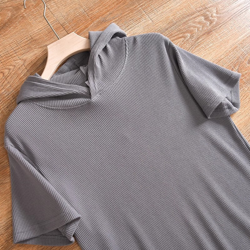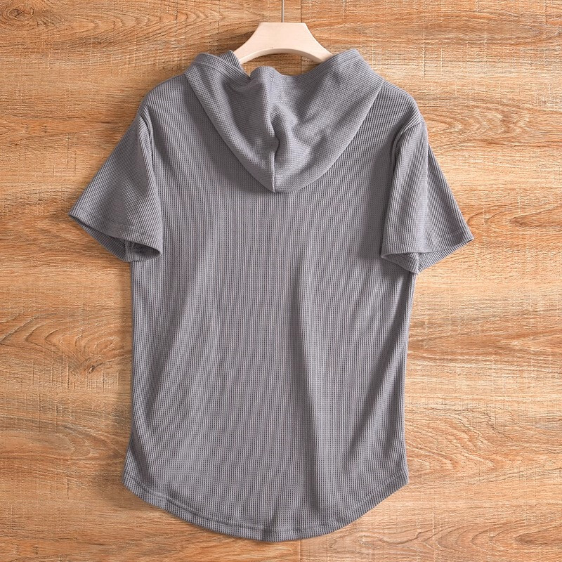 春夏にぴったりな、快適でスタイリッシュなメンズ用ニットワッフル生地フード付き半袖Tシャツが登場!