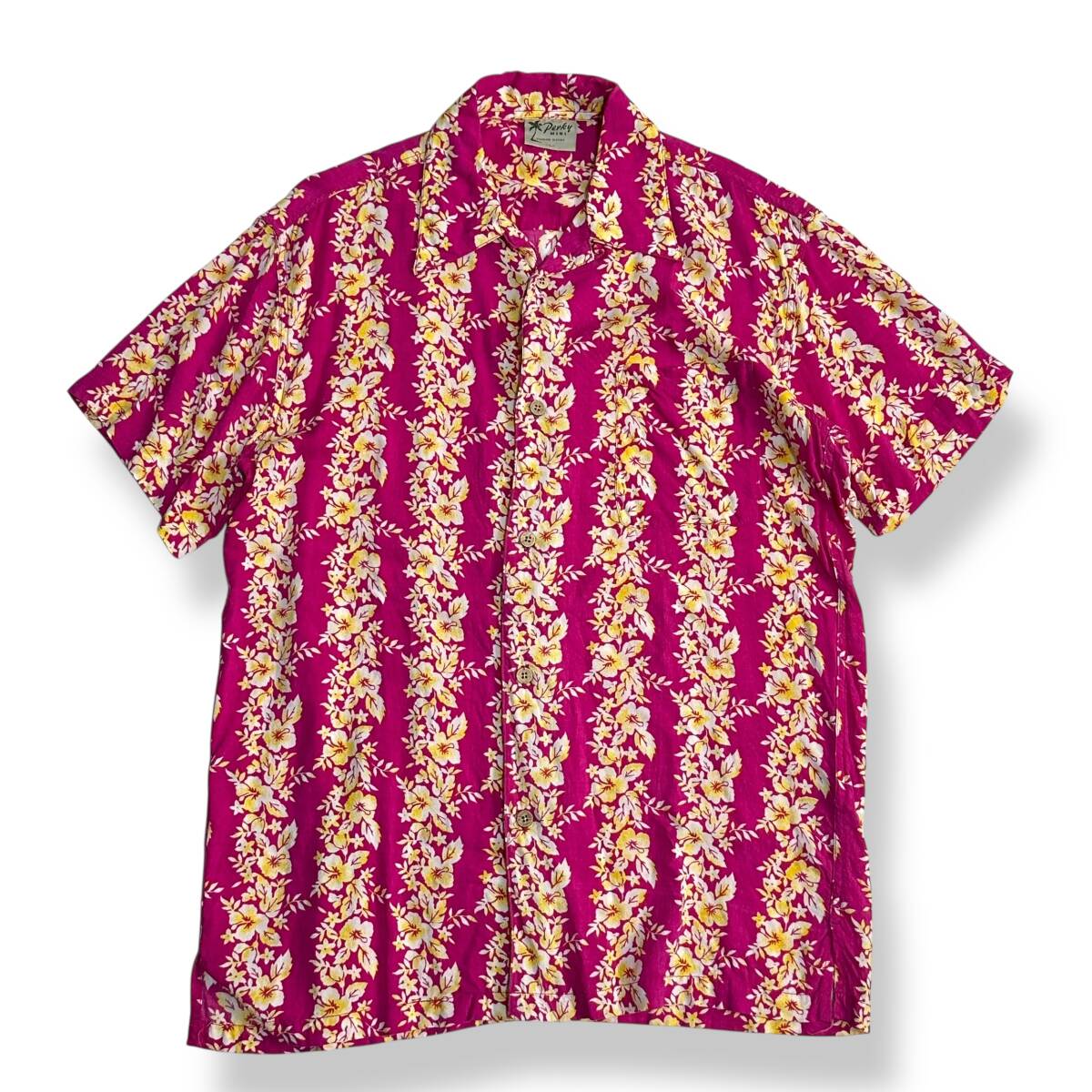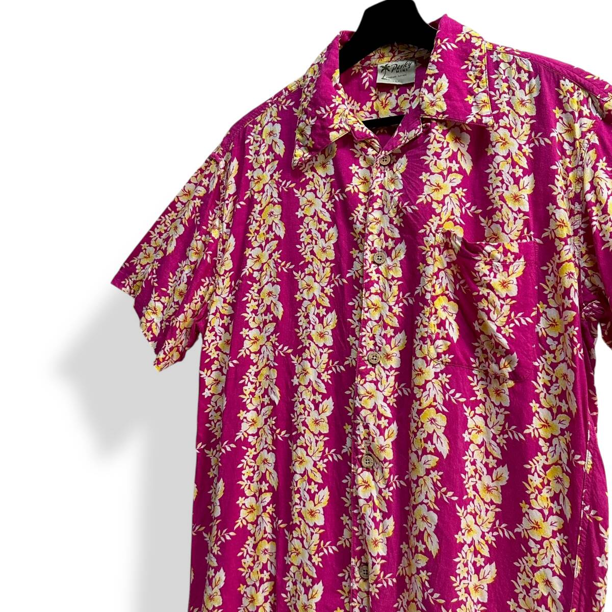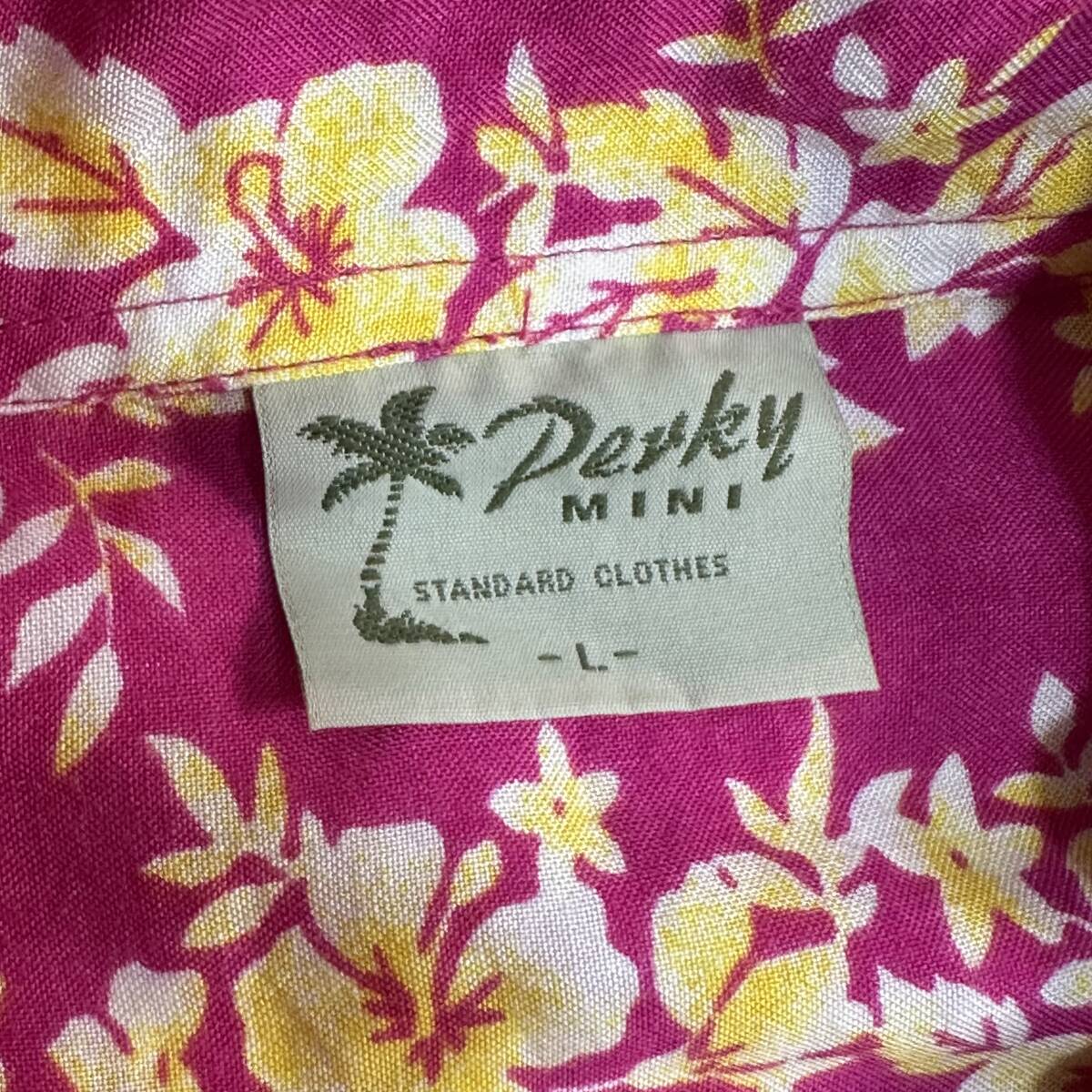 レア【Perky MINI】VINTAGE 90s~ ハイビスカス レーヨン100% ビンテージアロハシャツ 花柄 古着 オープンカラーシャツ 開襟 ボタニカル
