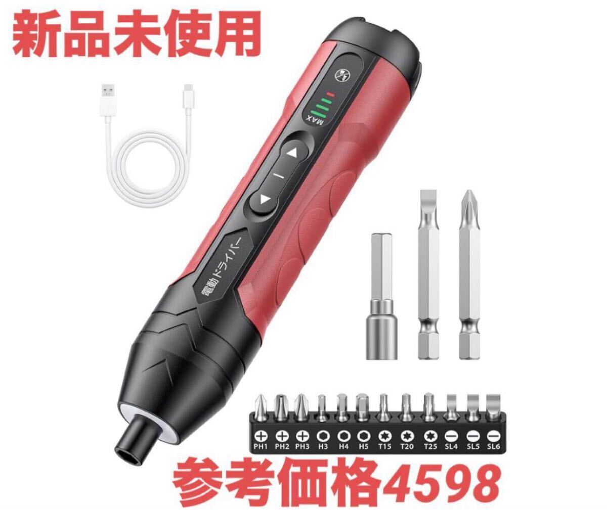 電動ドライバー 小型【2025新登場強化版】手動兼用 充電式ドライバー 4段階切替モード 正逆転切り替え Type-C LEDライト ネジ回し 合金製 ビット 15本付 強力 軽量 滑り止め 電源ボタン付き 電動工具 人間工学設計 操作簡単 ネジ締め 持ち運び便利 家庭用DIY/日常の組み立て/ 家電修理/電力設備作業/女性/初心者対応 日本語取扱説明書