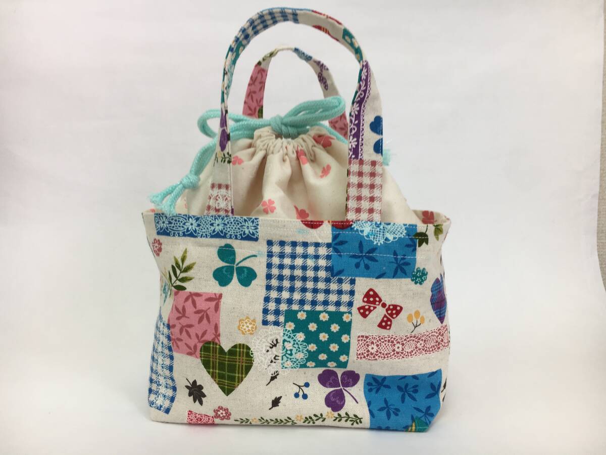 ハンドメイド 新品 未使用 持ち手付き お弁当袋 マチ付き F170