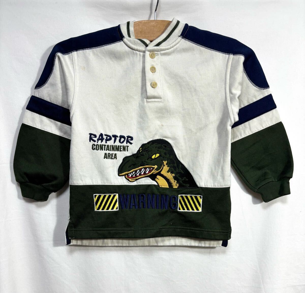 ■ 子供用 90s 90年代 ビンテージ vintage RAPTOR Dinosaur ラプトル 恐竜 ヘンリーナック スウェット トレーナー 古着 KIDS キャラ ■