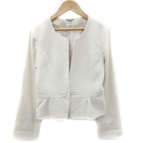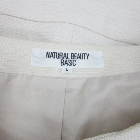 ナチュラルビューティーベーシック NATURAL BEAUTY BASIC ノーカラージャケット ミドル丈 総裏地 L アイボリー /YM4 レディース