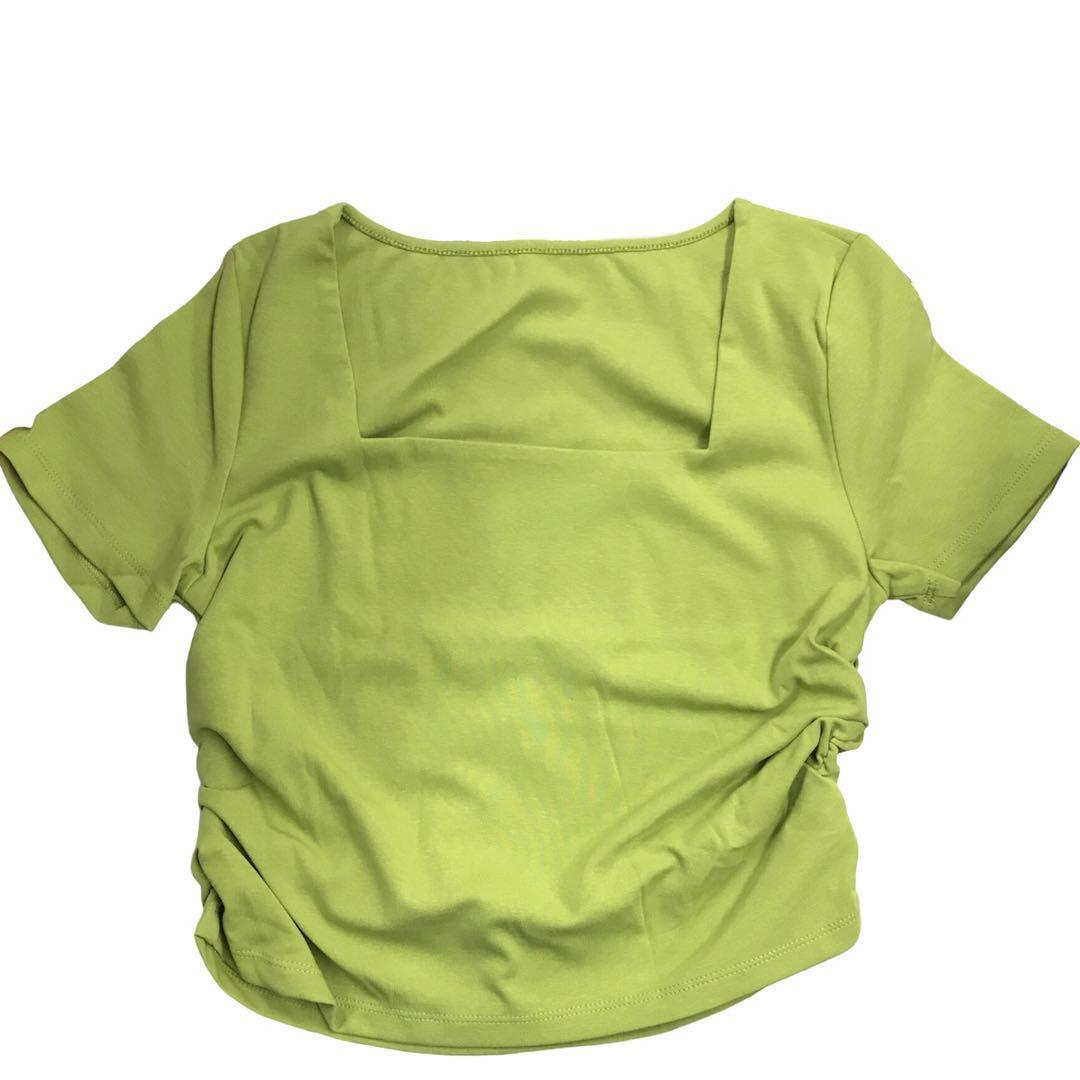 レディース 半袖 カットソー スクエアネック グリーン S 〜 M mj-638