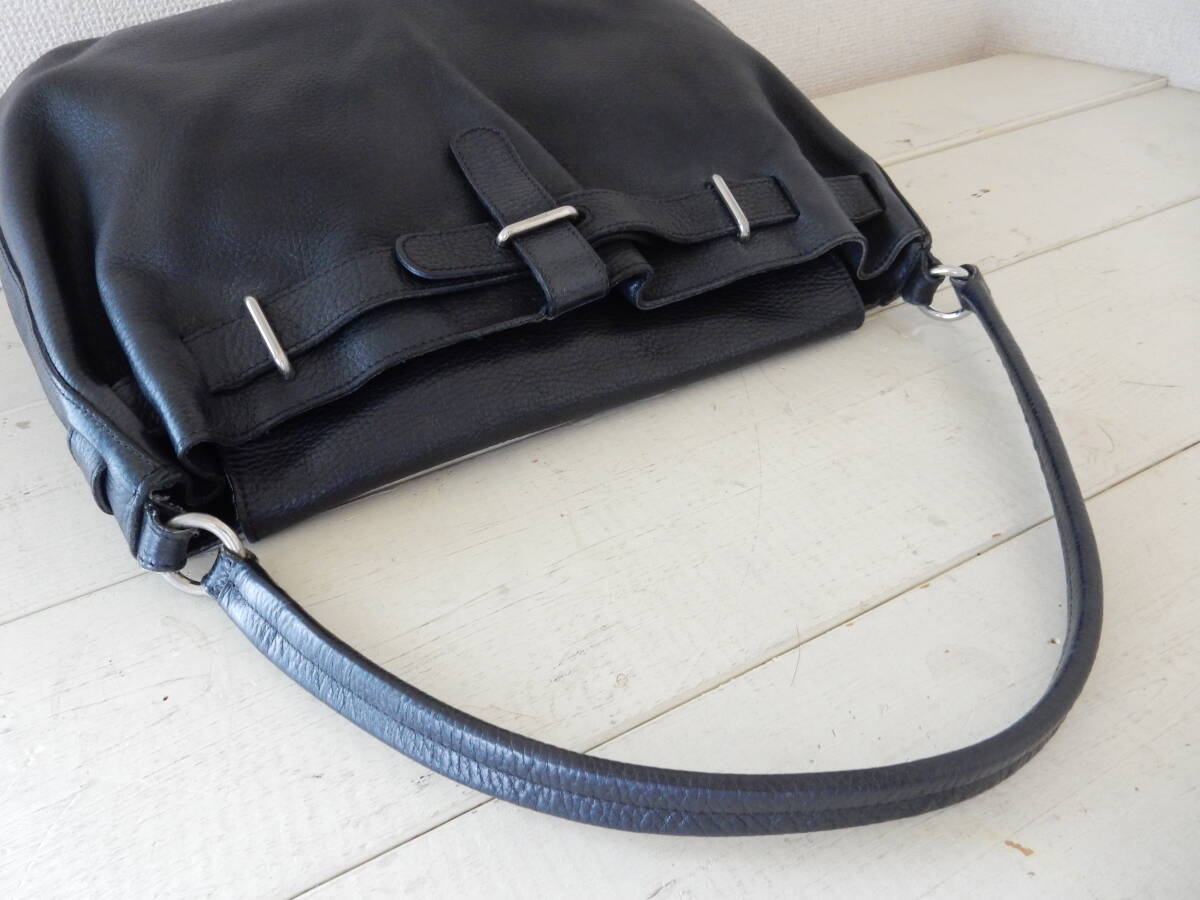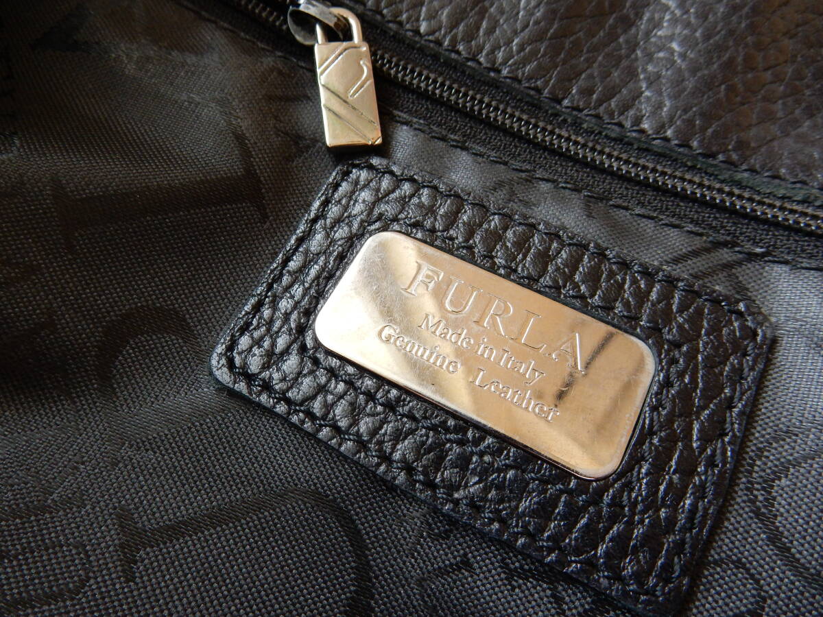 イタリア製☆本革☆FURLA(フルラ)☆A4対応☆レザーショルダーバッグ ブラック(金具シルバー)