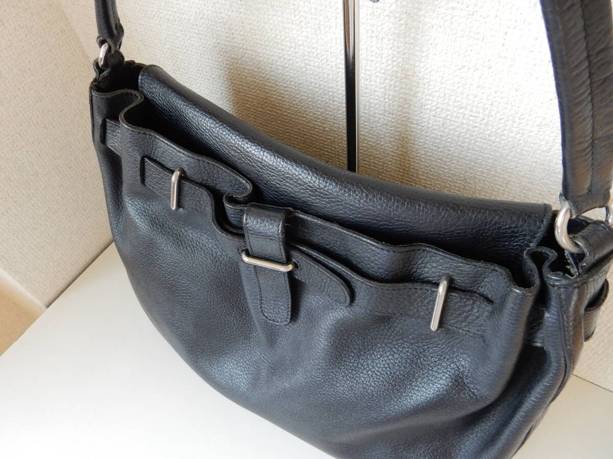 フロントベルトがアクセントとなった本革ショルダーバッグ。