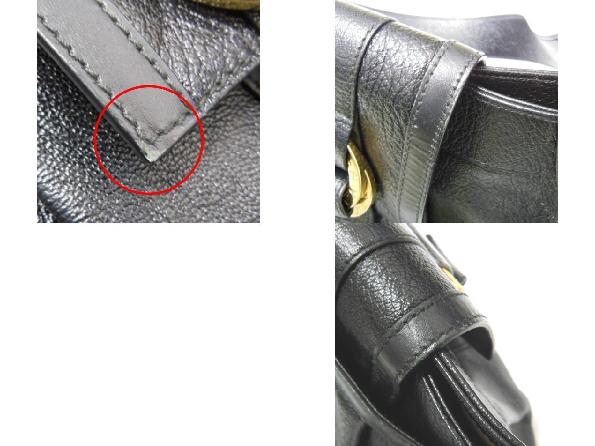 | 外側 | 表面に少々のスレ、シワ、角や縁にスレ、金具に小さなキズ等ございます。 ショルダーにスレ、ひび割れ、付け根に糸の飛び出し等ございます。 | |