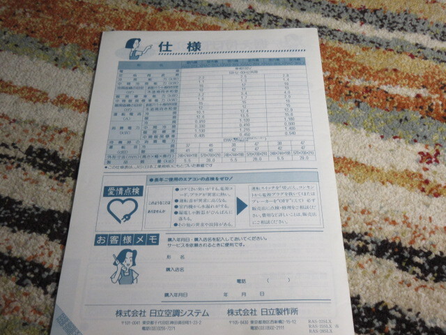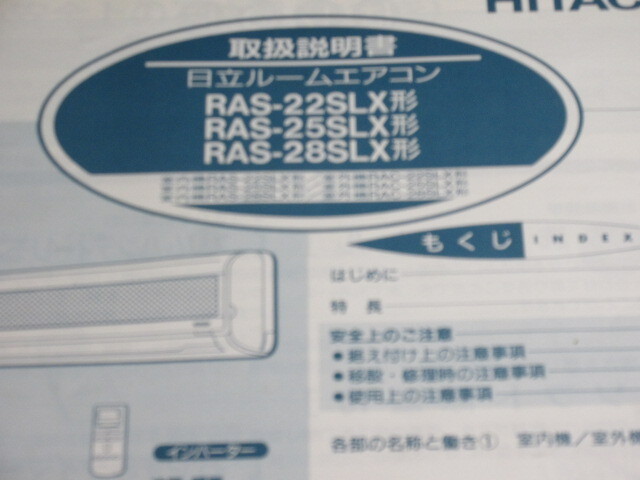 ◎【取扱説明書】 「日立ルームエアコン RAS-22SLX形 RAS-25SLX形 RAS-28SLX形」 ☆中古